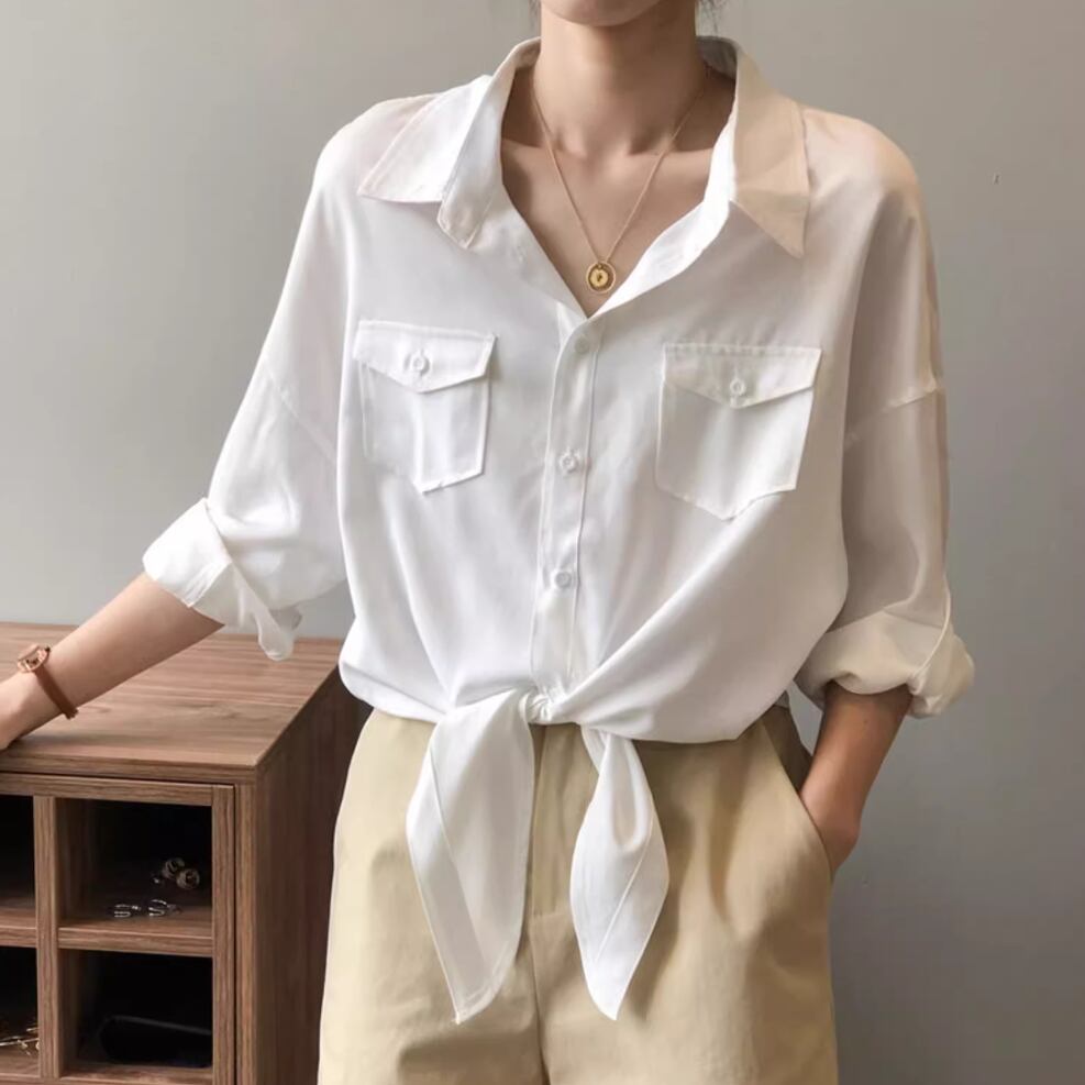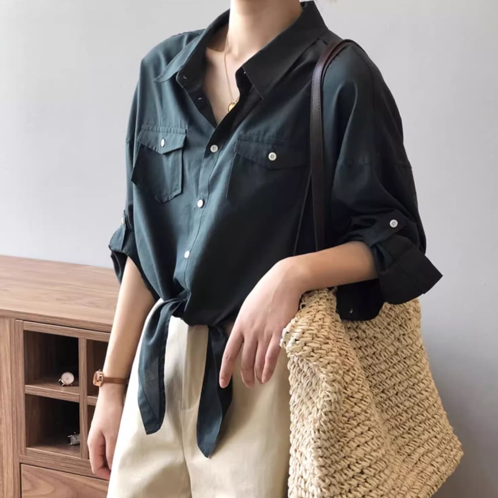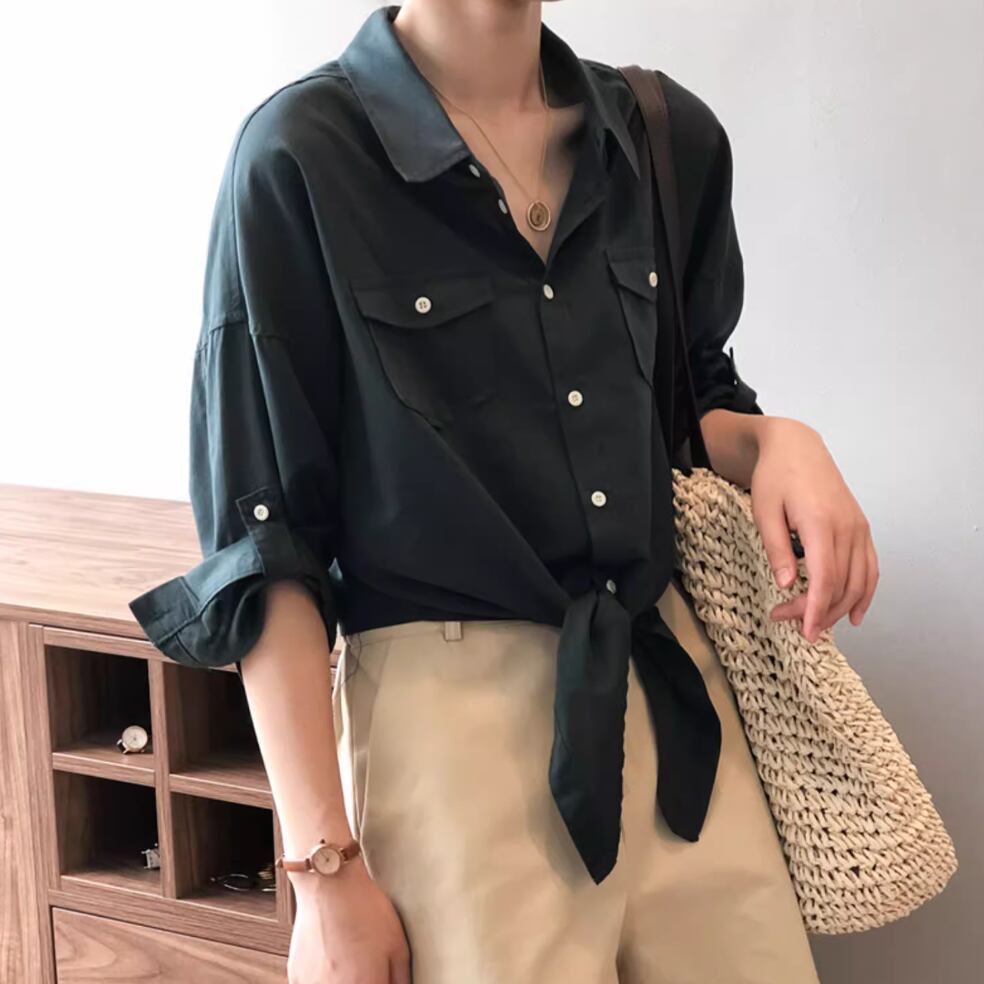 2色/ノーカラーバルーンスリーブブラウス ・17773