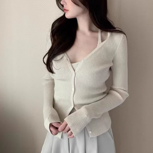 【2点セット】4色/Vネックニットトップス+ニットショール ・19992