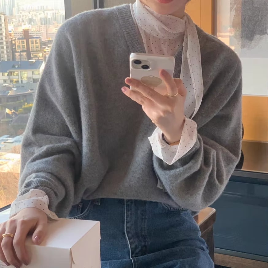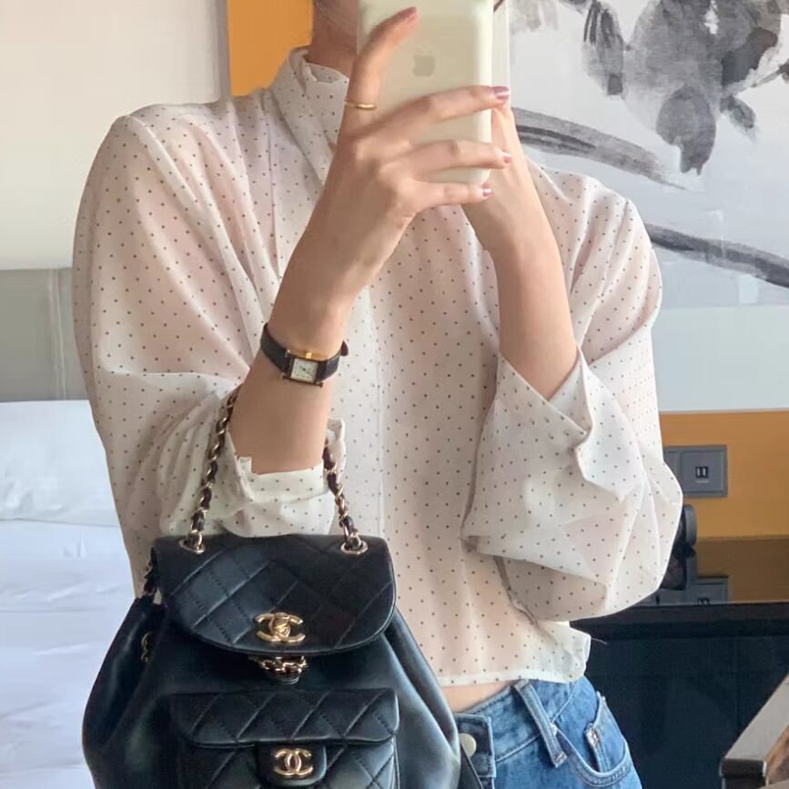 2色/ノーカラーバルーンスリーブブラウス ・17773