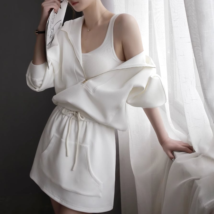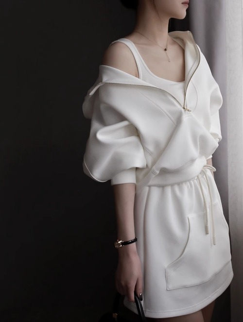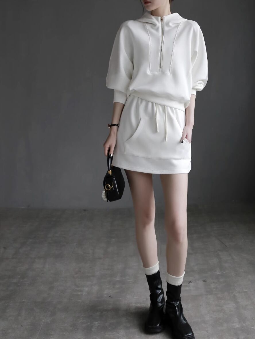 【2点セット】2色/バイカラージップアップジャケット+スカート ・17945