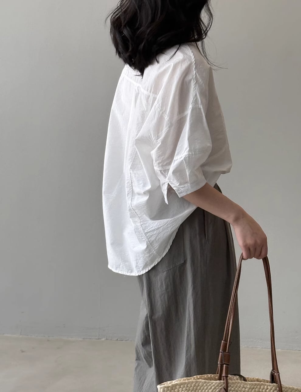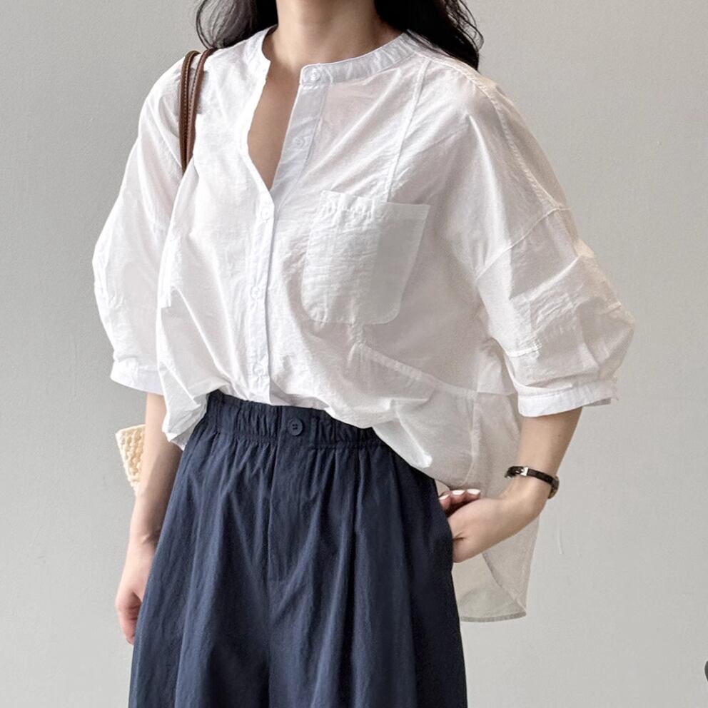 2色/ノーカラーバルーンスリーブブラウス ・17773