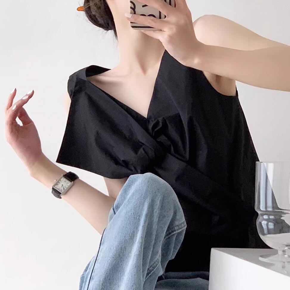 4色/ノースリーブアシメデザイントップス ・18990