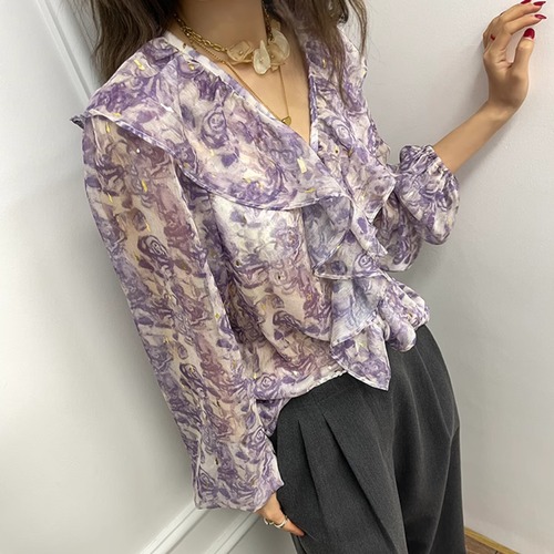2色/ノーカラーバルーンスリーブブラウス ・17773