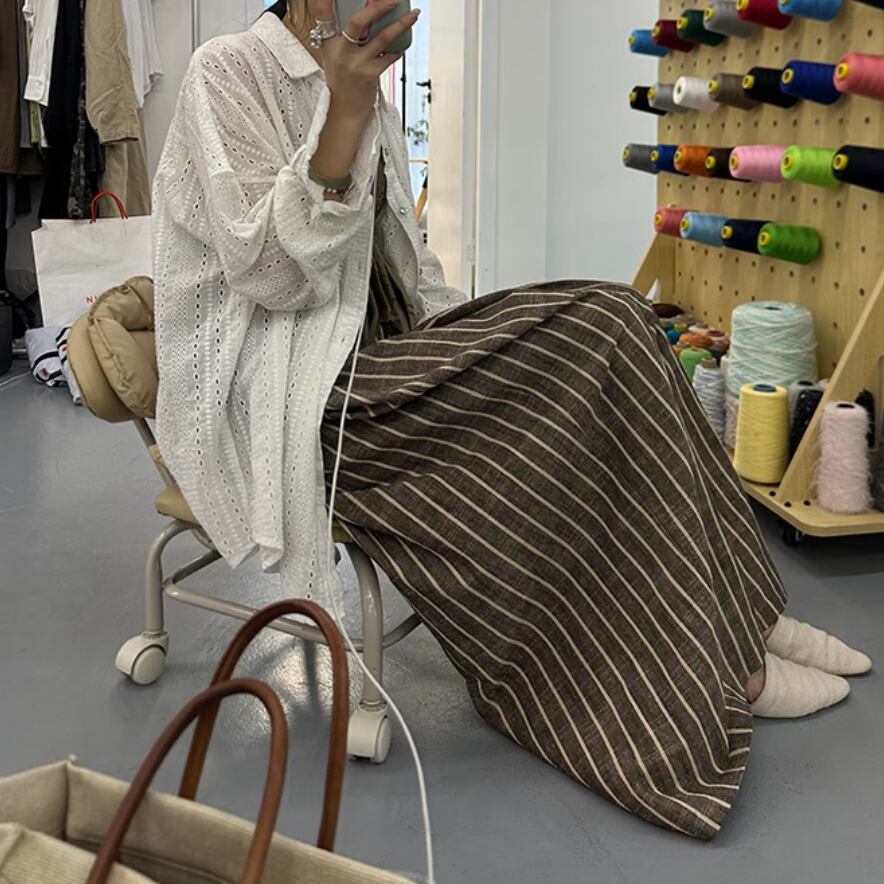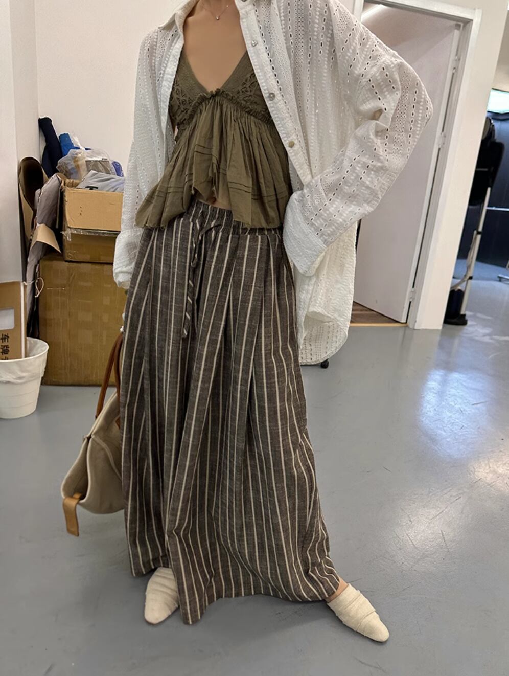 ▽Instagram「新作情報配信中」 フォローお願いいたします。 https://www.instagram.com/stir.clothes/ ▼カラー ブラウン(画像2枚目) ライトカーキ(画像3枚目) ▼サイズ [ Sサイズ ] 着丈96cm ウエスト64-84cm ヒップ134cm わたり幅112cm 裾囲り103cm [ Mサイズ ] 着丈97cm ウエスト68-88cm ヒップ138cm わたり幅114cm 裾囲り105cm [ Lサイズ ] 着丈98cm ウエスト72-92cm ヒップ142cm わたり幅116cm 裾囲り107cm ※1-3cm程度の誤差がある場合がございます。予めご了承ください。 ▼素材 コットン、ポリエステル、リネン ▼シーズン 春,夏 ▼同じカテゴリの商品はこちら https://www.stir.jp/categories/3047434 ▽お支払い方法 ・クレジットカード決済 ・キャリア決済 (docomo/au/Softbank/Y!mobile) ・後払い決済 (商品お届け後コンビニ払いなど) ▽注意点 ※こちらの商品は決済から10日-3週間前後でのお届けとなります。 ※配送日時指定等に関しては、ご指定できないことご了承くださいませ。 ※できる限り早くお届けできるように手配させて頂きます。 ※検品はしておりますが、もし届いた商品に不備がありましたら、誠実に対応させていただきます。 商品ID:ST018186