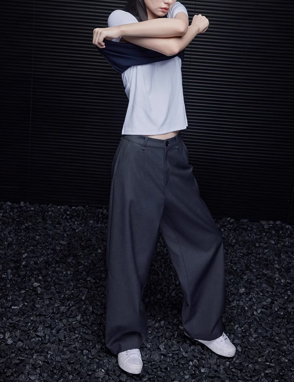 【2点セット】2色/ノースリーブウエストマークトップス+ワイドレッグパンツ ・18707