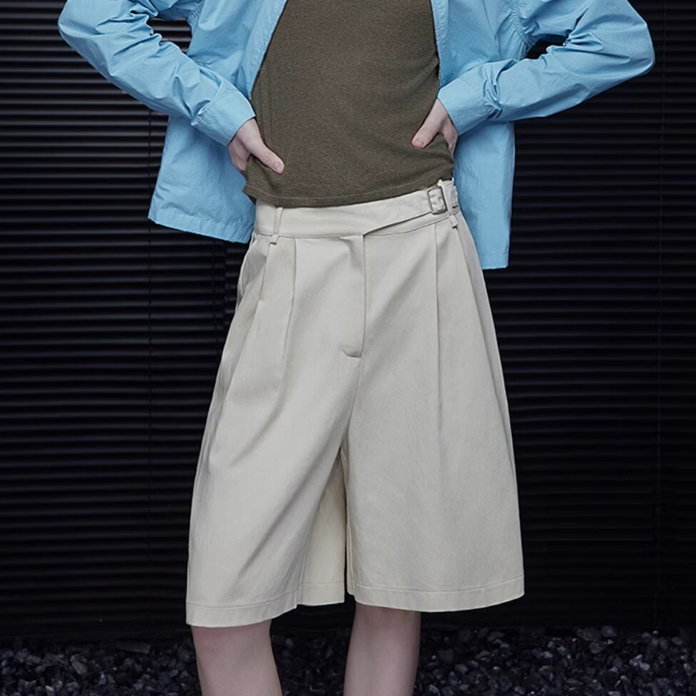【2点セット】2色/ツータックハーフパンツ+ベルト ・18524