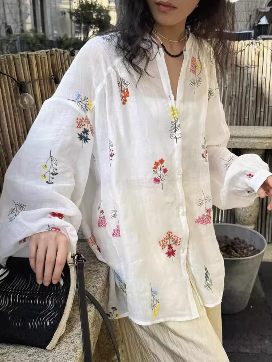 2色/ノーカラーバルーンスリーブブラウス ・17773