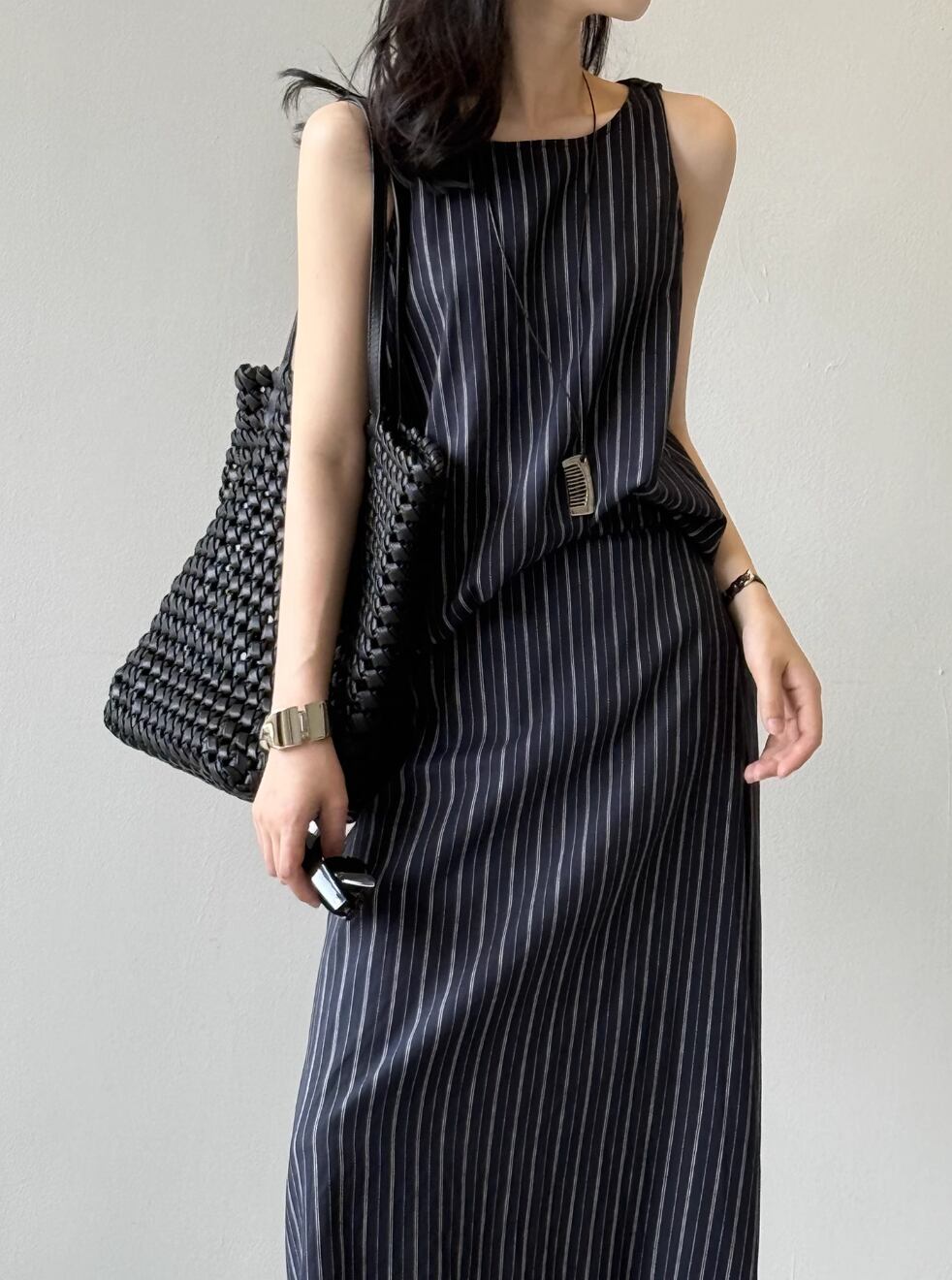 【2点セット】2色/ノースリーブウエストマークトップス+ワイドレッグパンツ ・18707