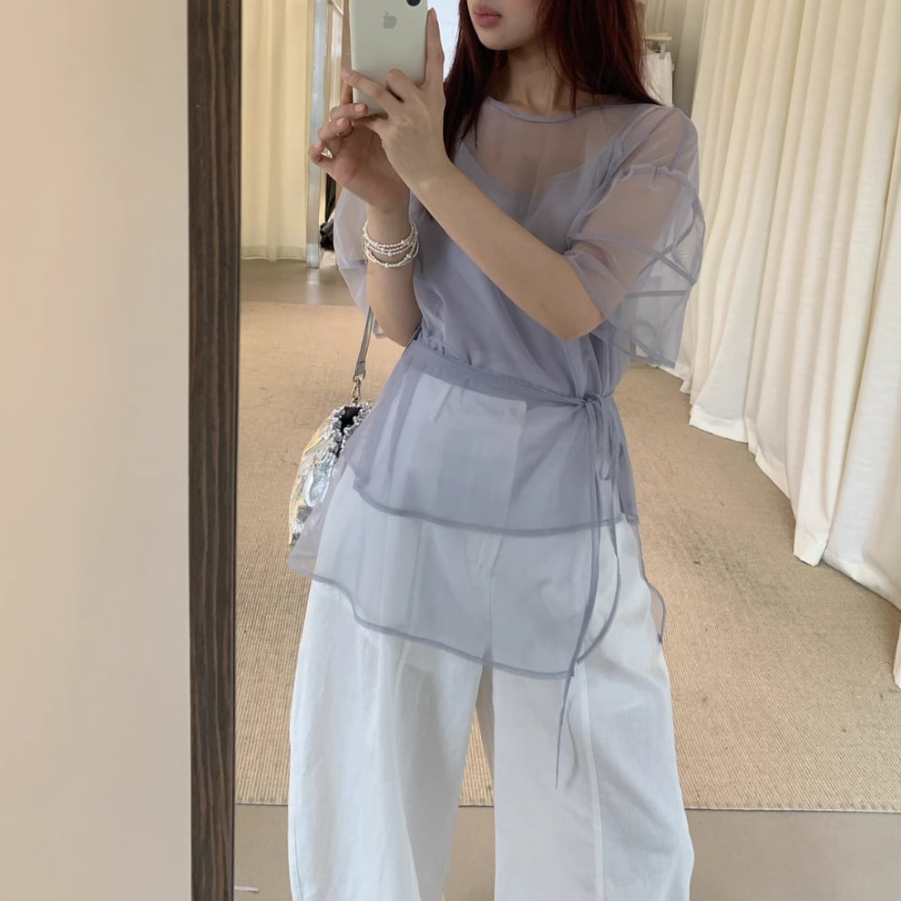 3色/ウエストマークシアートップス ・18993