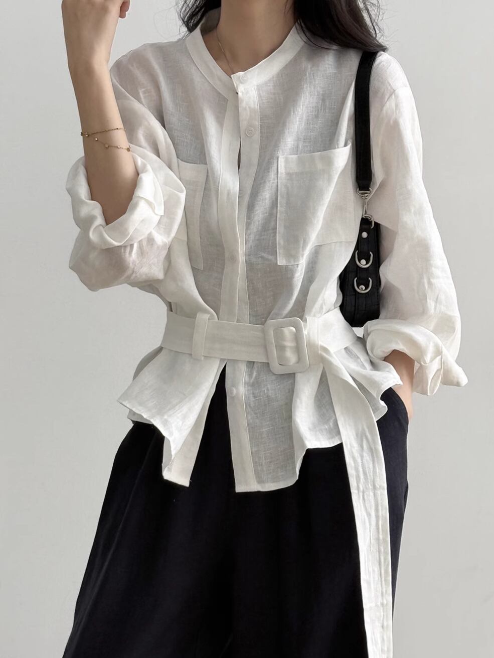 2色/ノーカラーバルーンスリーブブラウス ・17773