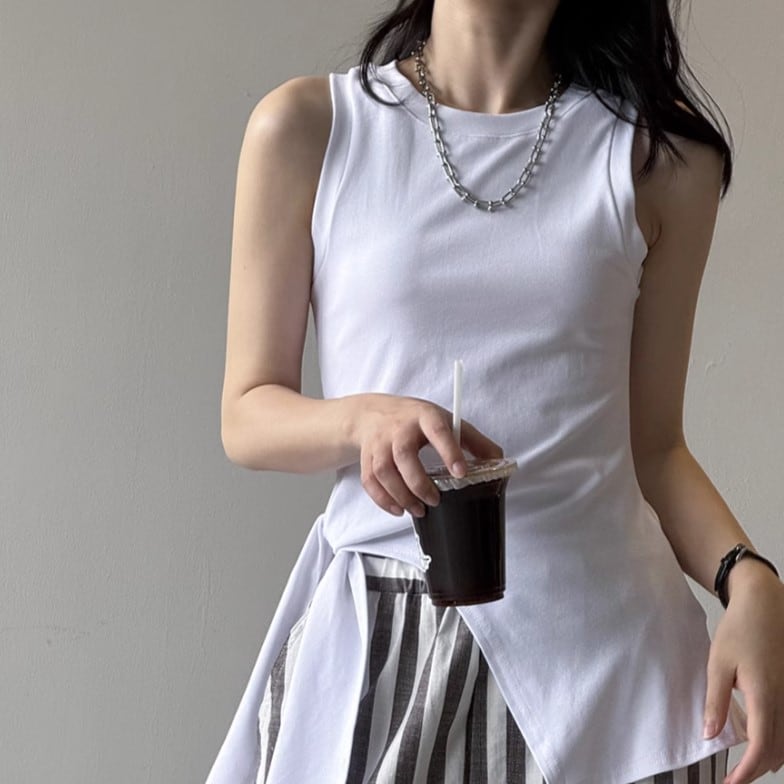 4色/ノースリーブアシメデザイントップス ・18990