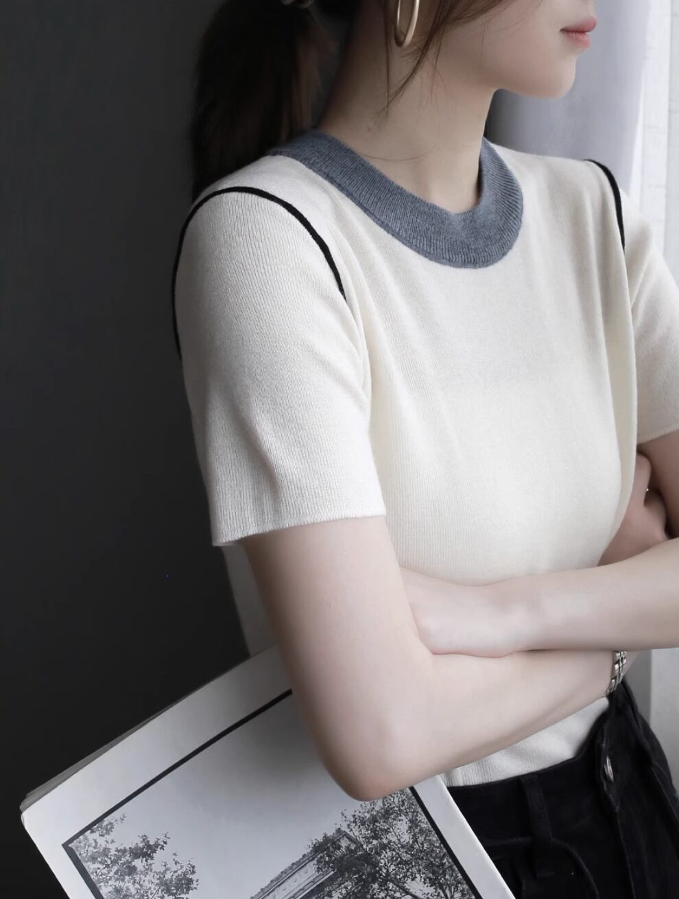 モックネックドレープトップス ・19792