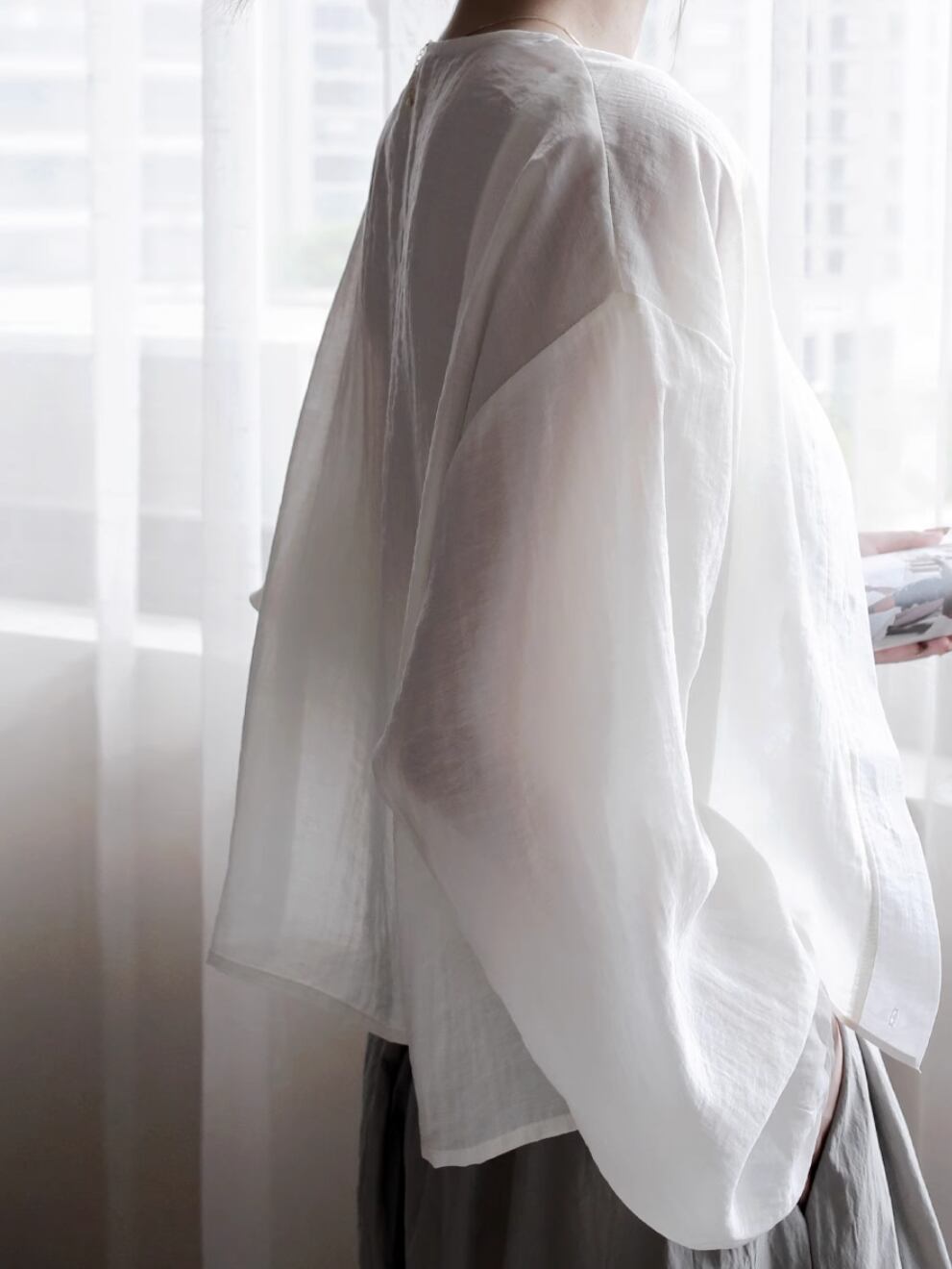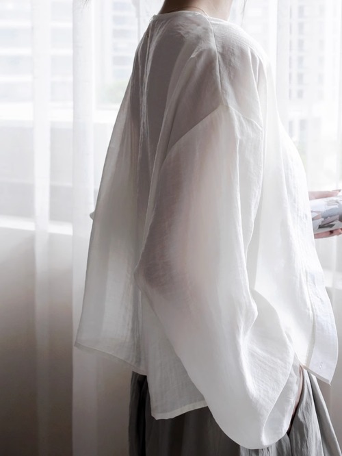 2色/ノーカラーバルーンスリーブブラウス ・17773
