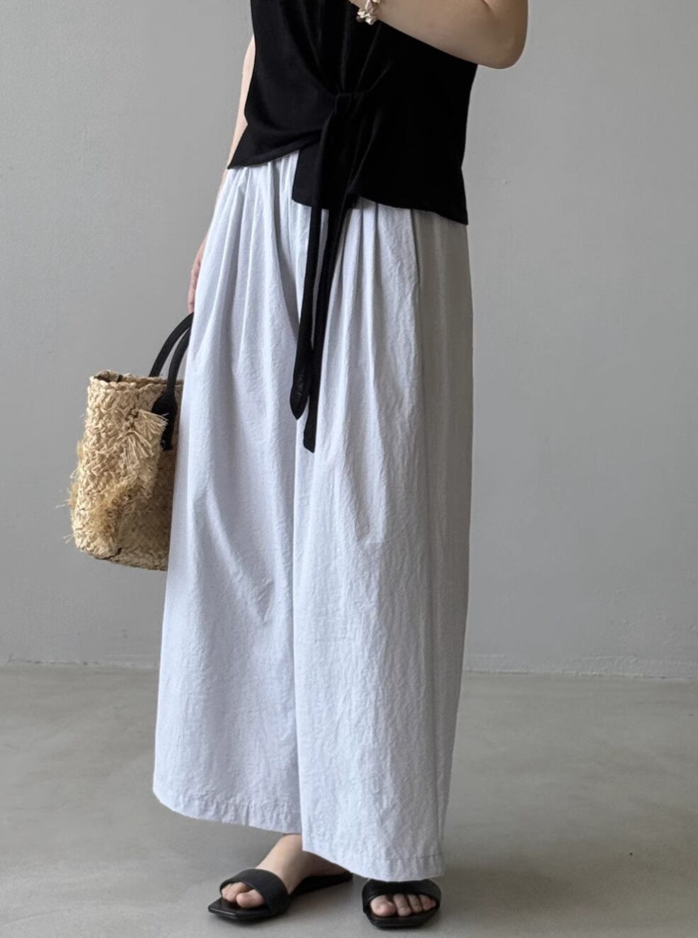 ▽Instagram「新作情報配信中」 フォローお願いいたします。 https://www.instagram.com/stir.clothes/ ▼カラー ホワイト(画像2枚目) アプリコット(画像3枚目) ライトグレー(画像4枚目) ダークグレー(画像5枚目) ▼サイズ [ Mサイズ ] 着丈93cm ウエスト62cm ヒップ102cm わたり幅66cm [ Lサイズ ] 着丈94cm ウエスト66cm ヒップ106cm わたり幅68cm ※1-3cm程度の誤差がある場合がございます。予めご了承ください。 ▼素材 ポリエステル、コットン ▼シーズン 春,夏 ▼同じカテゴリの商品はこちら https://www.stir.jp/categories/3047434 ▽お支払い方法 ・クレジットカード決済 ・キャリア決済 (docomo/au/Softbank/Y!mobile) ・後払い決済 (商品お届け後コンビニ払いなど) ▽注意点 ※こちらの商品は決済から10日-3週間前後でのお届けとなります。 ※配送日時指定等に関しては、ご指定できないことご了承くださいませ。 ※できる限り早くお届けできるように手配させて頂きます。 ※検品はしておりますが、もし届いた商品に不備がありましたら、誠実に対応させていただきます。 商品ID:ST019005