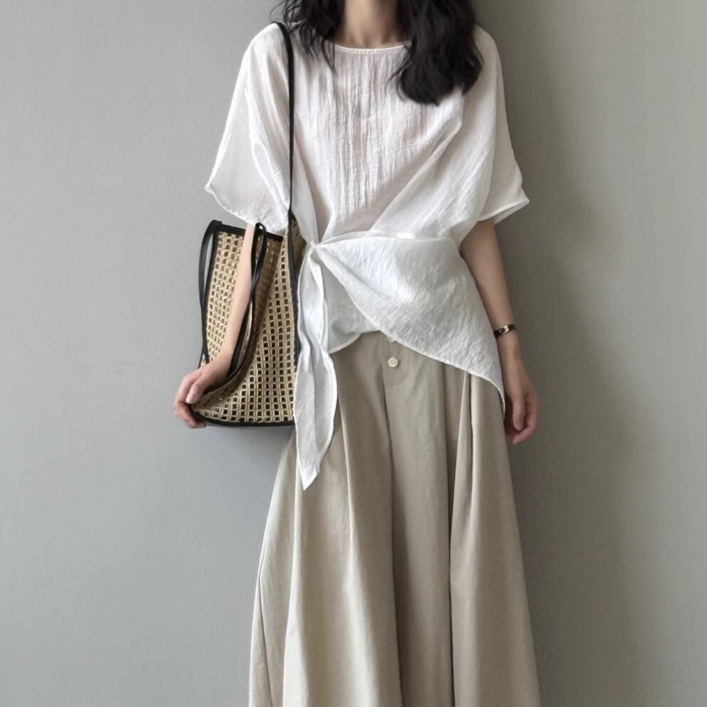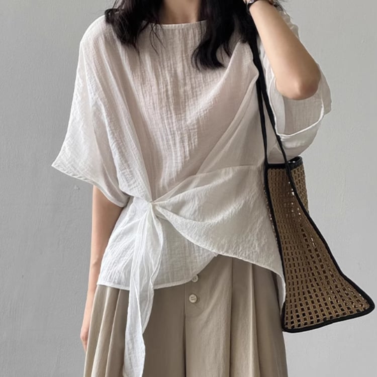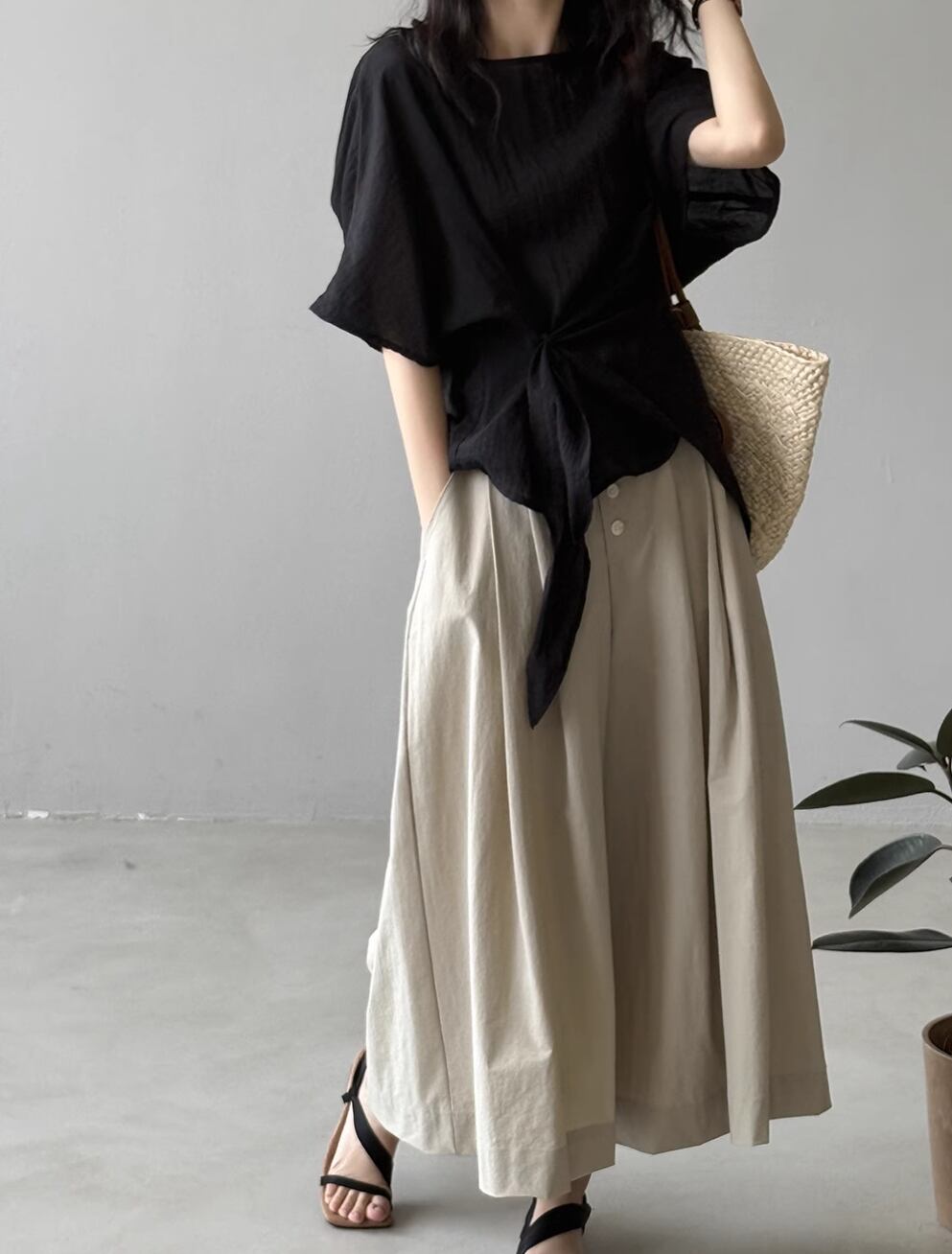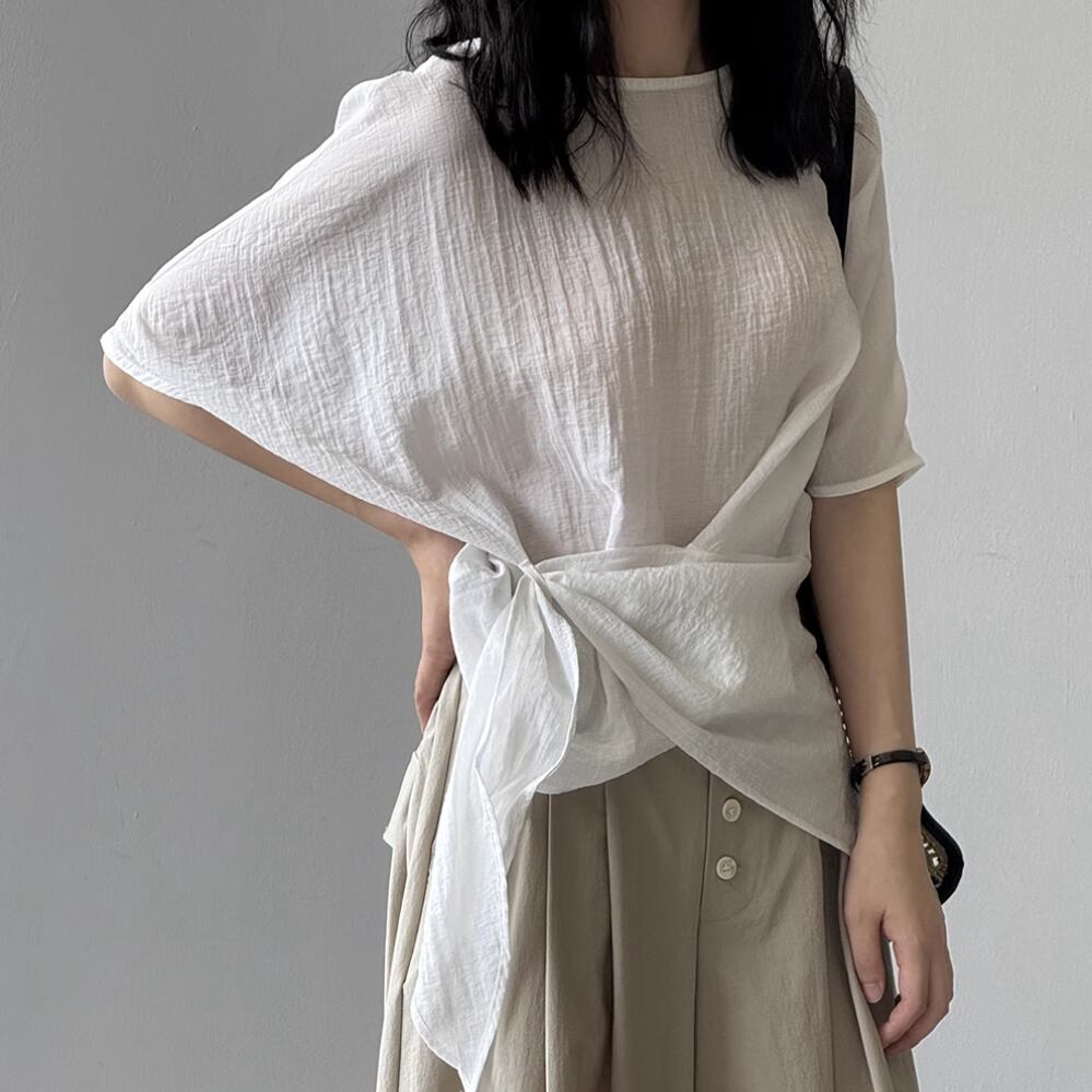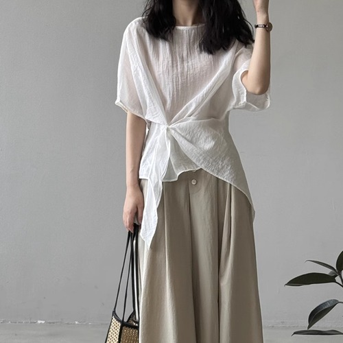 ▽Instagram「新作情報配信中」 フォローお願いいたします。 https://www.instagram.com/stir.clothes/ ▼カラー ホワイト(画像2枚目) グレー(画像3枚目) ブラック(画像4枚目) ▼サイズ [ Mサイズ ] 着丈57cm 袖丈36cm 裾囲り92cm [ Lサイズ ] 着丈58cm 袖丈37cm 裾囲り96cm ※1-3cm程度の誤差がある場合がございます。予めご了承ください。 ▼素材 ビスコース、ナイロン ▼シーズン 春,夏 ▼同じカテゴリの商品はこちら https://www.stir.jp/categories/3047426 ▽お支払い方法 ・クレジットカード決済 ・キャリア決済 (docomo/au/Softbank/Y!mobile) ・後払い決済 (商品お届け後コンビニ払いなど) ▽注意点 ※こちらの商品は決済から10日-3週間前後でのお届けとなります。 ※配送日時指定等に関しては、ご指定できないことご了承くださいませ。 ※できる限り早くお届けできるように手配させて頂きます。 ※検品はしておりますが、もし届いた商品に不備がありましたら、誠実に対応させていただきます。 商品ID:ST018993