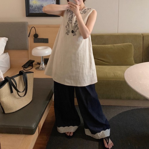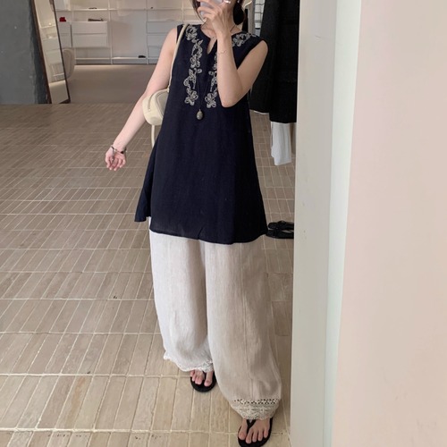 2色/ノースリーブバックスリットトップス ・18571