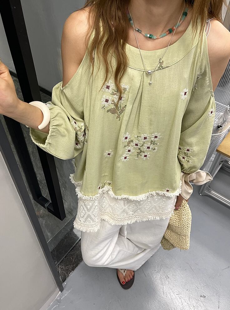 ▽Instagram「新作情報配信中」 フォローお願いいたします。 https://www.instagram.com/stir.clothes/ ▼カラー アイボリー(画像2枚目) ライトグリーン(画像3枚目) ▼サイズ [ Sサイズ ] 着丈68cm バスト130cm 袖丈29cm [ Mサイズ ] 着丈69cm バスト134cm 袖丈30cm [ Lサイズ ] 着丈70cm バスト138cm 袖丈31cm ※1-3cm程度の誤差がある場合がございます。予めご了承ください。 ▼素材 レーヨン、ポリエステル、リネン ▼シーズン 春,夏 ▼同じカテゴリの商品はこちら https://www.stir.jp/categories/3047426 ▽お支払い方法 ・クレジットカード決済 ・キャリア決済 (docomo/au/Softbank/Y!mobile) ・後払い決済 (商品お届け後コンビニ払いなど) ▽注意点 ※こちらの商品は決済から10日-3週間前後でのお届けとなります。 ※配送日時指定等に関しては、ご指定できないことご了承くださいませ。 ※できる限り早くお届けできるように手配させて頂きます。 ※検品はしておりますが、もし届いた商品に不備がありましたら、誠実に対応させていただきます。 商品ID:ST019210