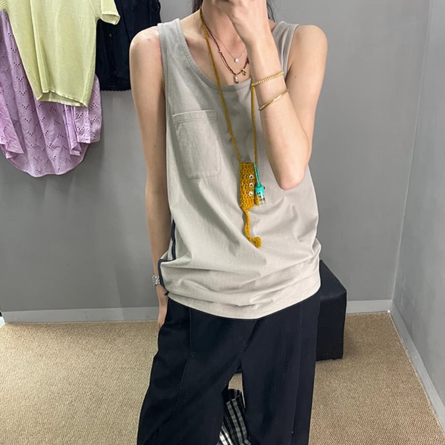 【2点セット】2色/ノースリーブウエストマークトップス+ワイドレッグパンツ ・18707
