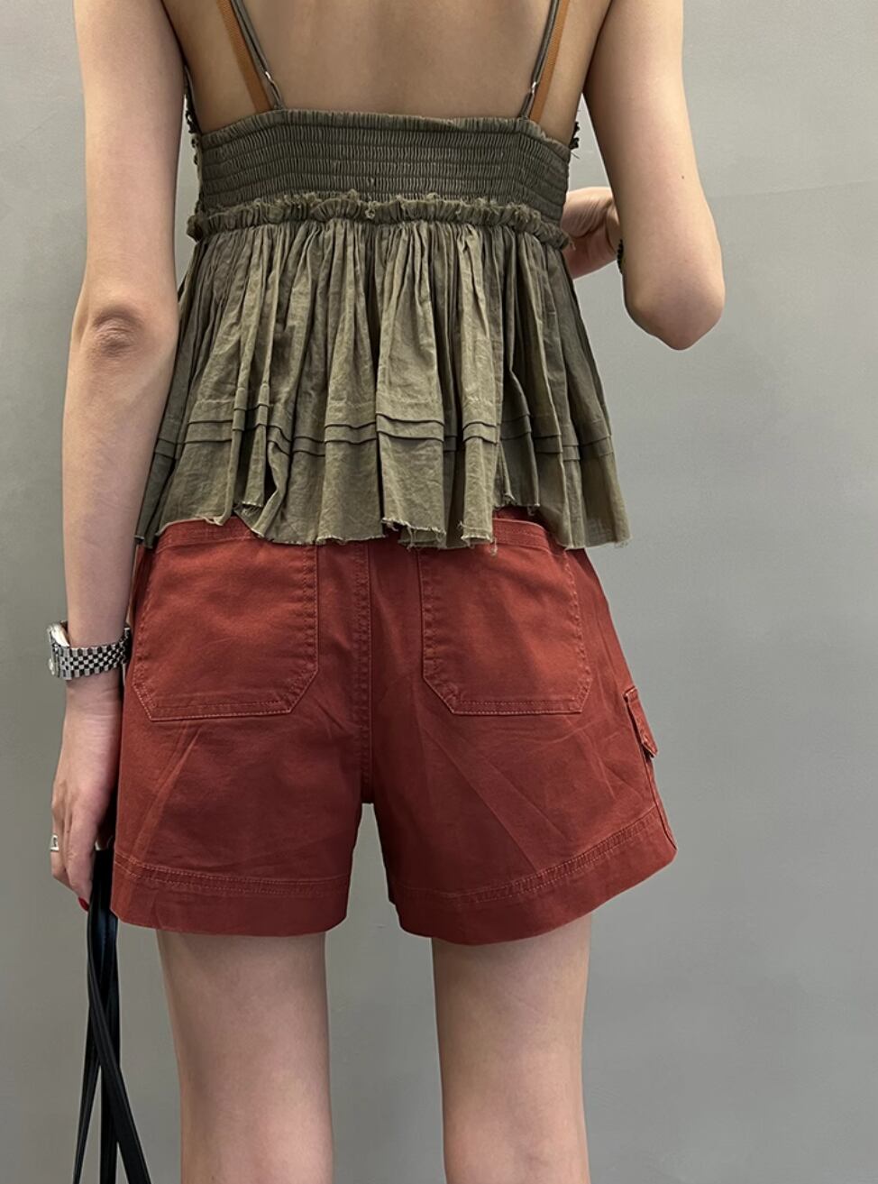 ▽Instagram「新作情報配信中」 フォローお願いいたします。 https://www.instagram.com/stir.clothes/ ▼カラー モスグリーン(画像2枚目) ブリックレッド(画像3枚目) ▼サイズ [ Sサイズ ] 着丈33cm ウエスト66-78cm ヒップ96cm わたり幅64cm 裾囲り62cm [ Mサイズ ] 着丈34cm ウエスト70-82cm ヒップ100cm わたり幅66cm 裾囲り64cm [ Lサイズ ] 着丈35cm ウエスト74-86cm ヒップ104cm わたり幅68cm 裾囲り66cm ※1-3cm程度の誤差がある場合がございます。予めご了承ください。 ▼素材 コットン、スパンデックス ▼シーズン 春,夏 ▼同じカテゴリの商品はこちら https://www.stir.jp/categories/3047434 ▽お支払い方法 ・クレジットカード決済 ・キャリア決済 (docomo/au/Softbank/Y!mobile) ・後払い決済 (商品お届け後コンビニ払いなど) ▽注意点 ※こちらの商品は決済から10日-3週間前後でのお届けとなります。 ※配送日時指定等に関しては、ご指定できないことご了承くださいませ。 ※できる限り早くお届けできるように手配させて頂きます。 ※検品はしておりますが、もし届いた商品に不備がありましたら、誠実に対応させていただきます。 商品ID:ST019194