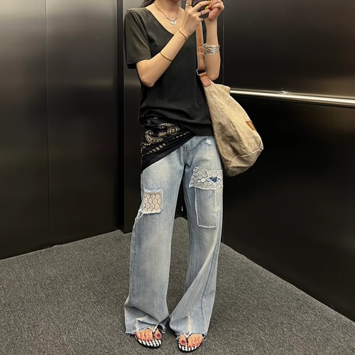2色/デザインネックカットソー ・19282