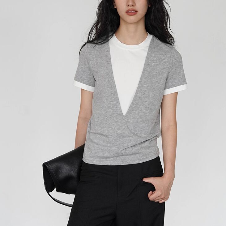 ▽Instagram「新作情報配信中」 フォローお願いいたします。 https://www.instagram.com/stir.clothes/ ▼カラー グレー(画像2枚目) ブラック(画像3枚目) ▼サイズ [ Sサイズ ] 着丈56.5cm バスト88cm 肩幅37cm 袖丈17cm [ Mサイズ ] 着丈57.5cm バスト92cm 肩幅38cm 袖丈17.5cm [ Lサイズ ] 着丈58.5cm バスト96cm 肩幅39cm 袖丈18cm ※1-3cm程度の誤差がある場合がございます。予めご了承ください。 ▼素材 コットン、ポリエステル、スパンデックス ▼シーズン 春,夏 ▼同じカテゴリの商品はこちら https://www.stir.jp/categories/3061581 ▽お支払い方法 ・クレジットカード決済 ・キャリア決済 (docomo/au/Softbank/Y!mobile) ・後払い決済 (商品お届け後コンビニ払いなど) ▽注意点 ※こちらの商品は決済から10日-3週間前後でのお届けとなります。 ※配送日時指定等に関しては、ご指定できないことご了承くださいませ。 ※できる限り早くお届けできるように手配させて頂きます。 ※検品はしておりますが、もし届いた商品に不備がありましたら、誠実に対応させていただきます。 商品ID:ST019175