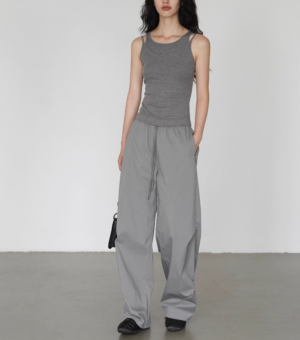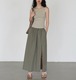 【2点セット】2色/ノースリーブウエストマークトップス+ワイドレッグパンツ ・18707