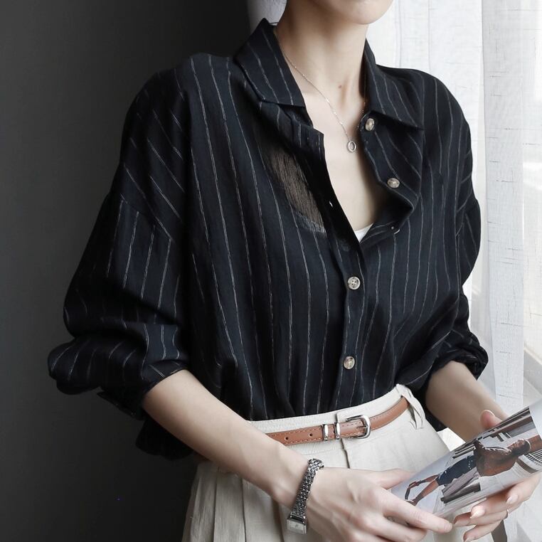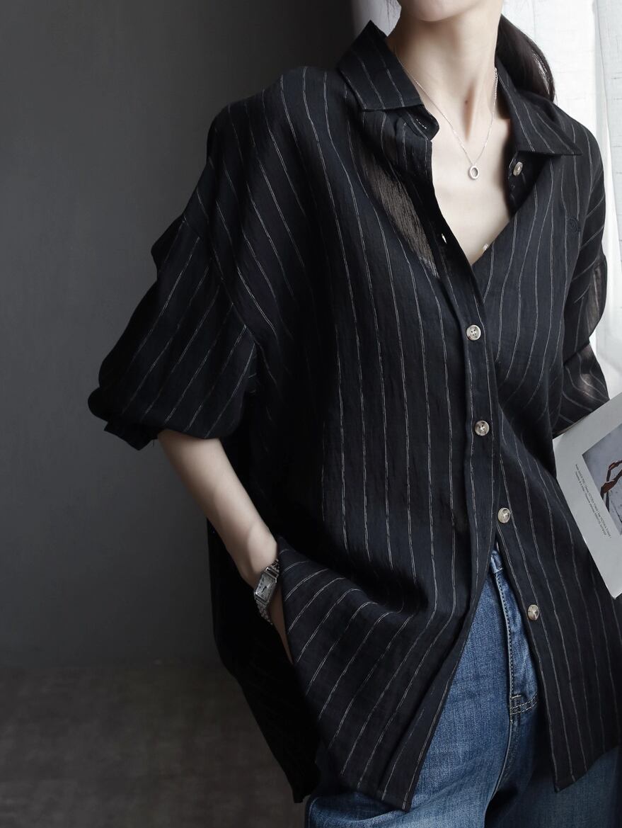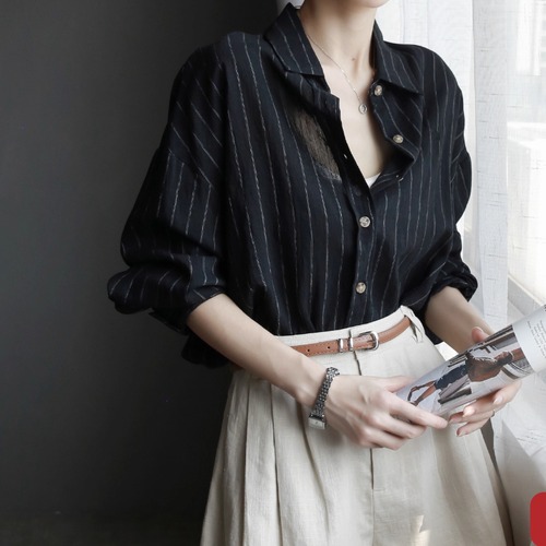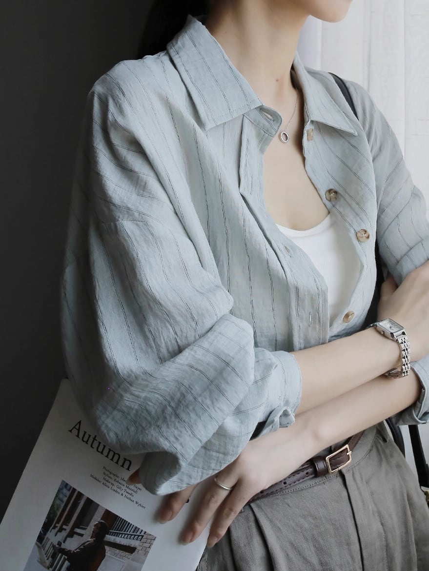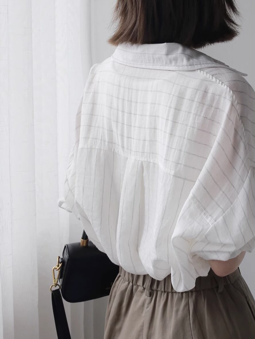 2色/ノーカラーバルーンスリーブブラウス ・17773
