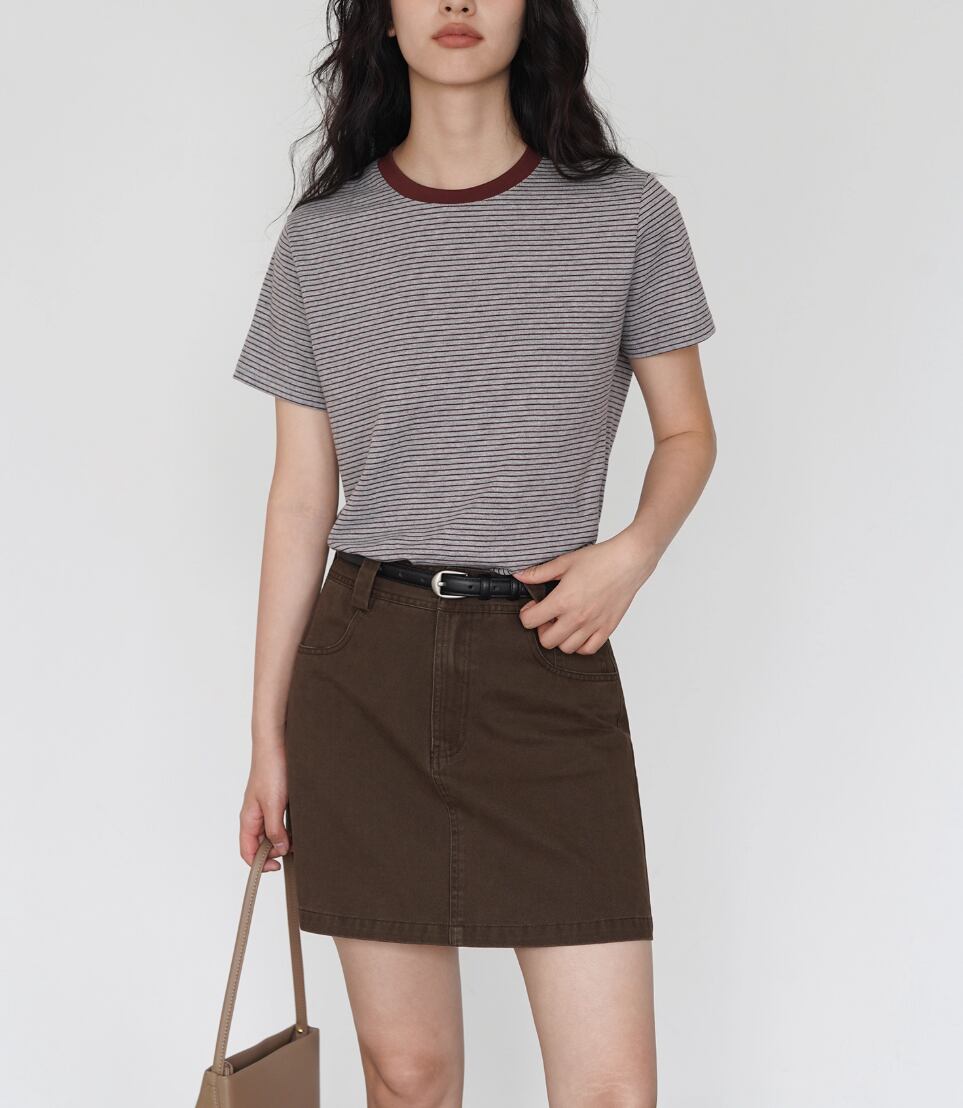 【2点セット】2色/ボーダーニットトップス+ミニスカート ・20103