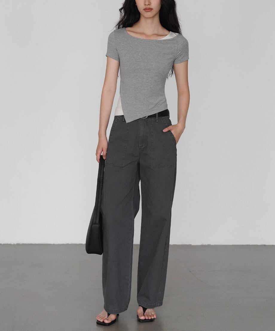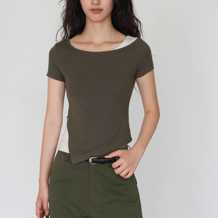 モックネックドレープトップス ・19792