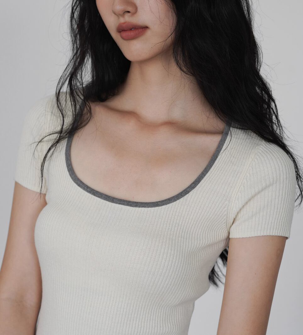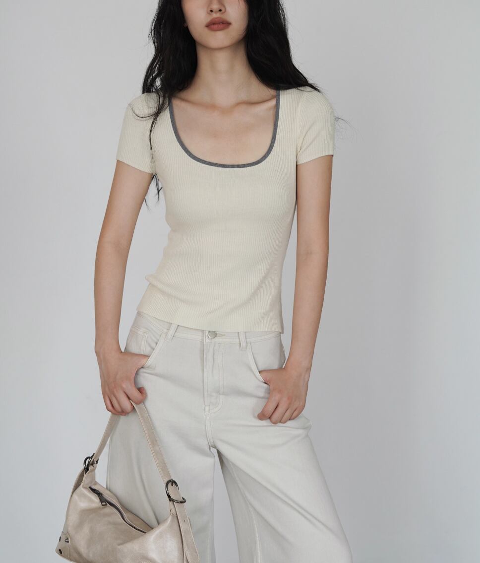 Vネックポロニットトップス ・20144