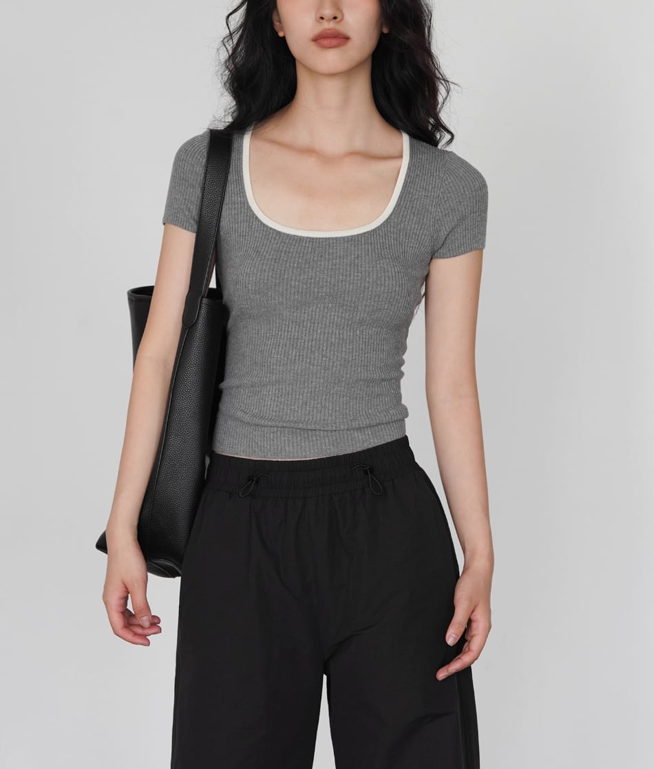 モックネックドレープトップス ・19792