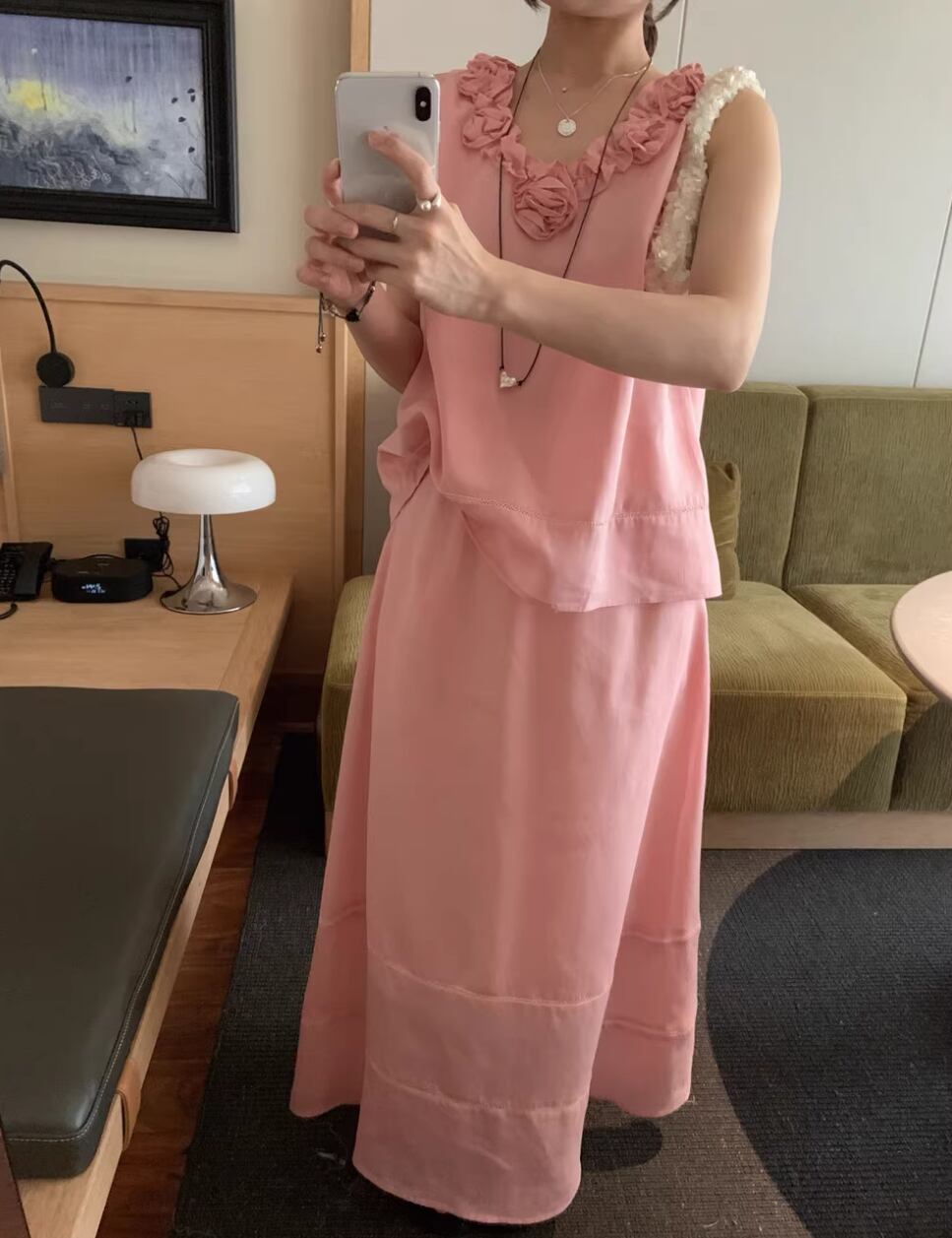 【2点セット】2色/ノースリーブウエストマークトップス+ワイドレッグパンツ ・18707