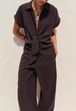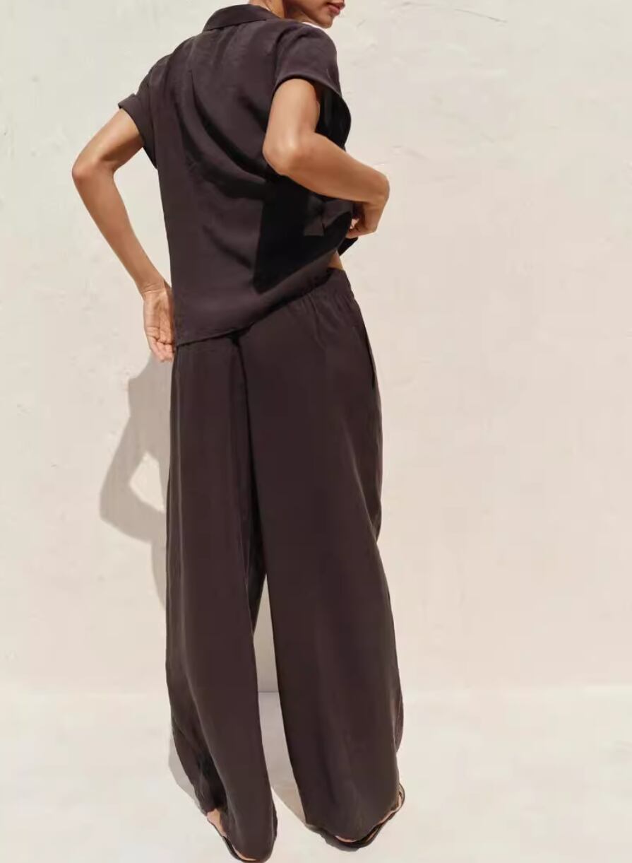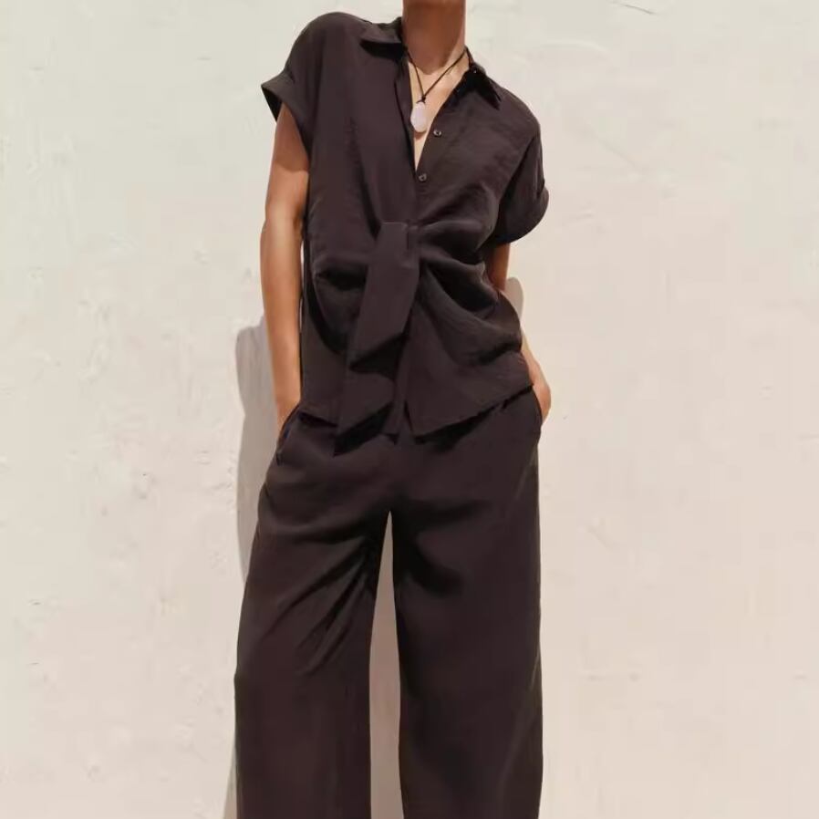 【2点セット】2色/ノースリーブウエストマークトップス+ワイドレッグパンツ ・18707