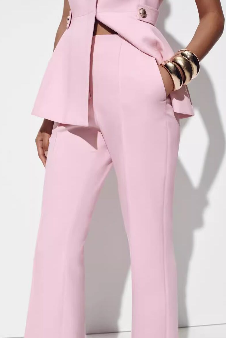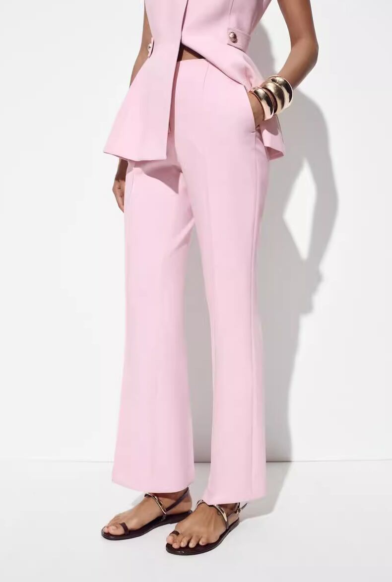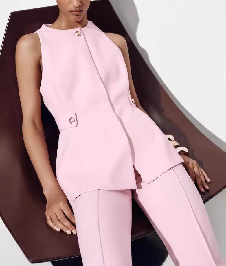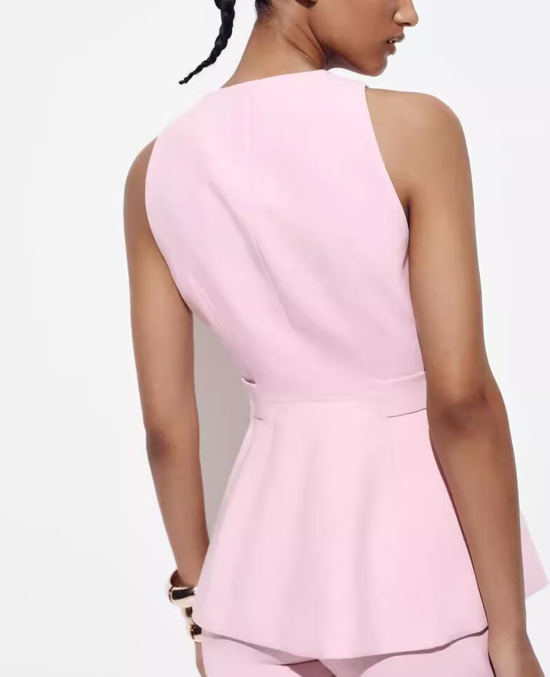 【2点セット】2色/ノースリーブウエストマークトップス+ワイドレッグパンツ ・18707