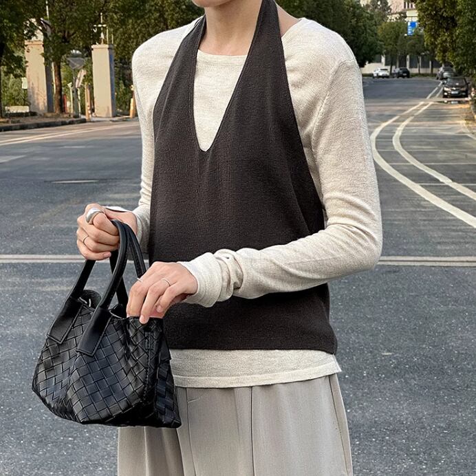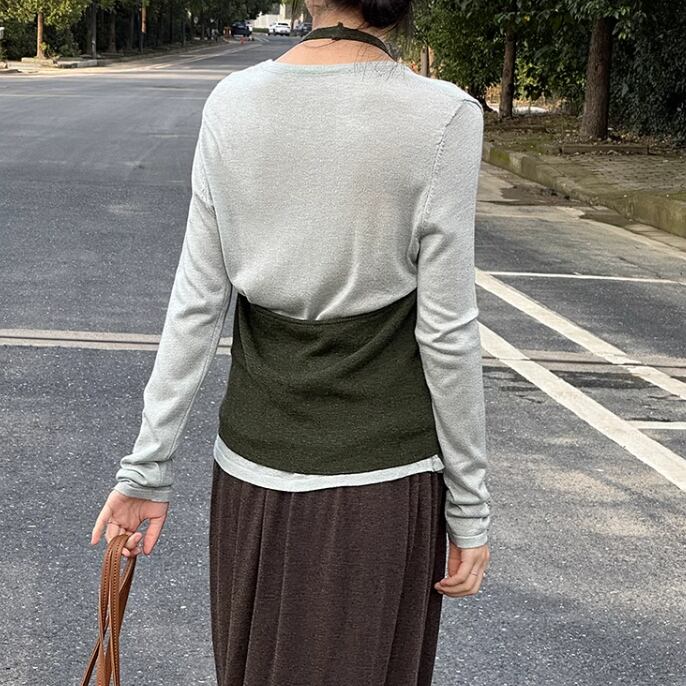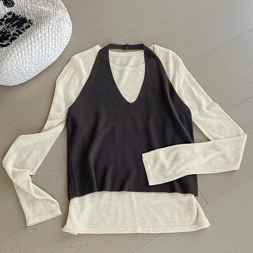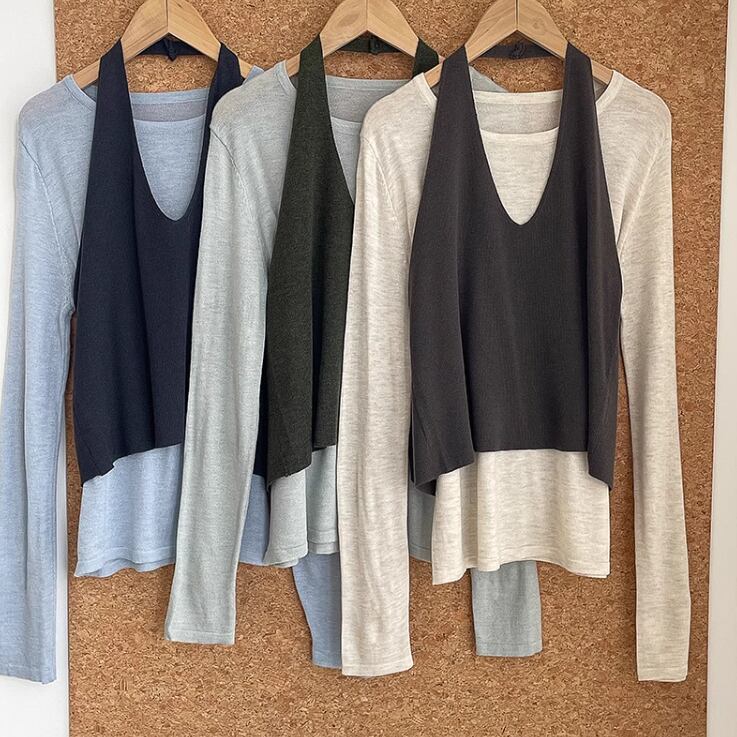【2点セット】Vネックニットカーディガン+ノースリーブニットトップス ・20036