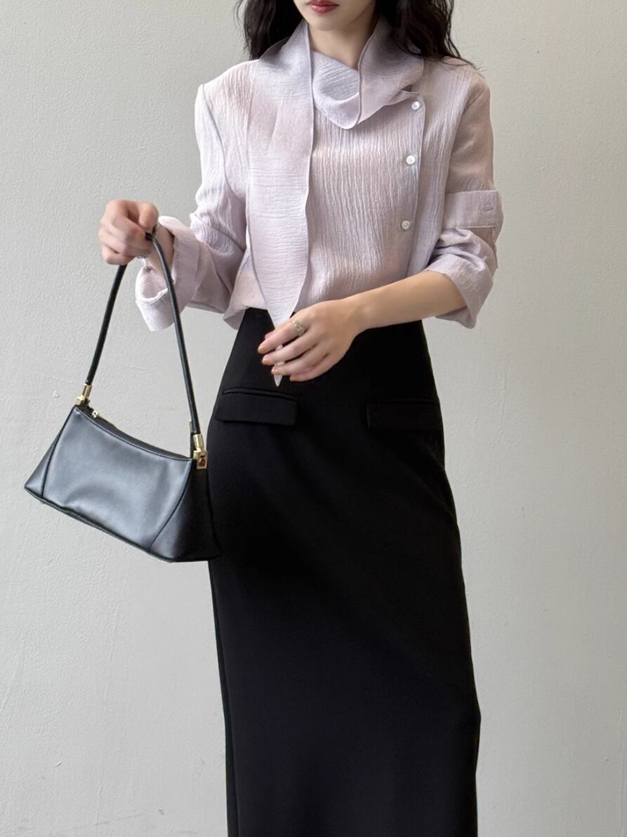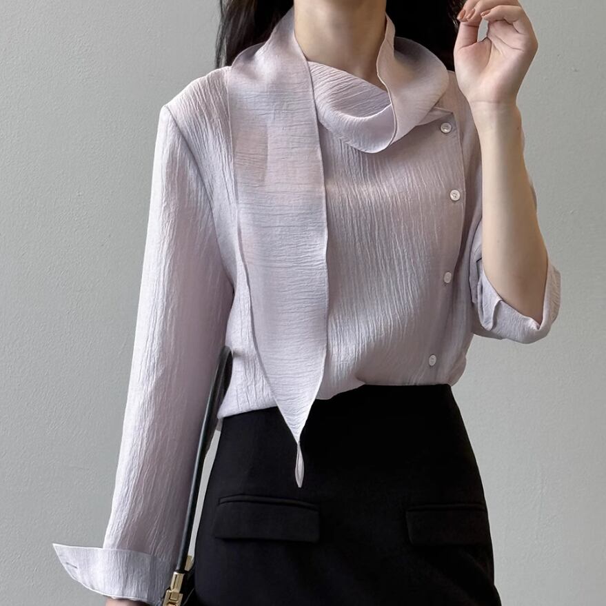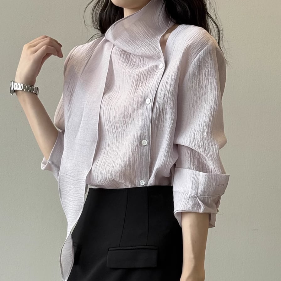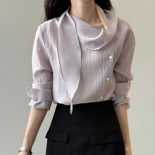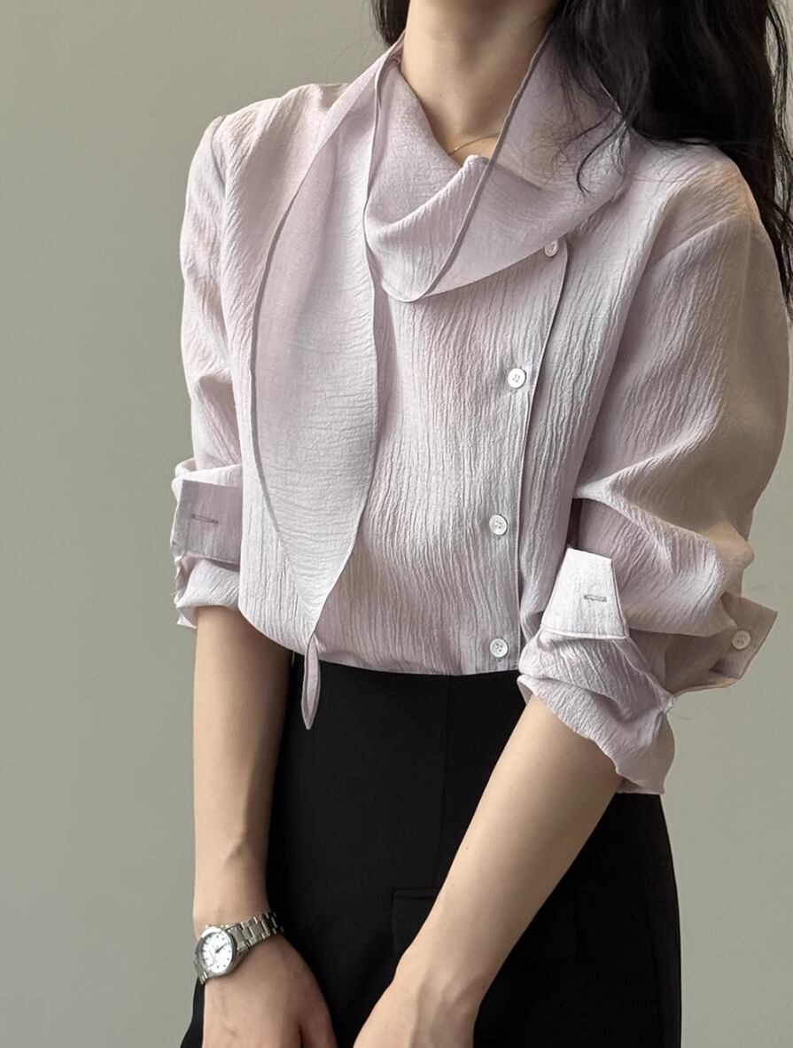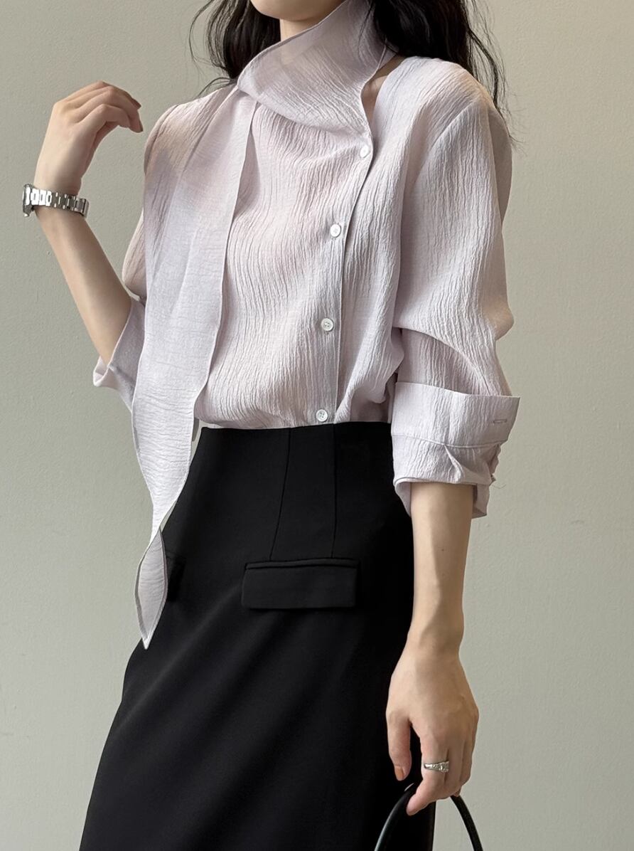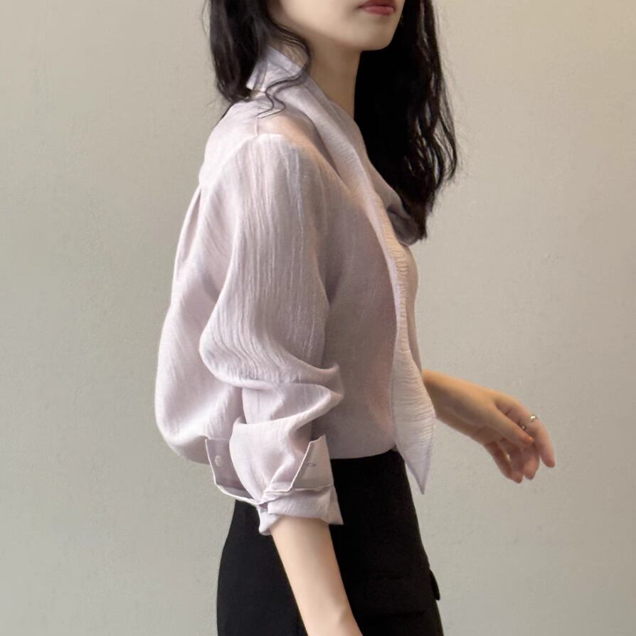 2色/ノーカラーバルーンスリーブブラウス ・17773
