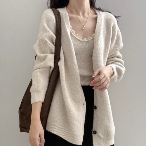 【2点セット】4色/Vネックニットトップス+ニットショール ・19992
