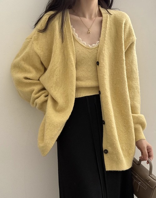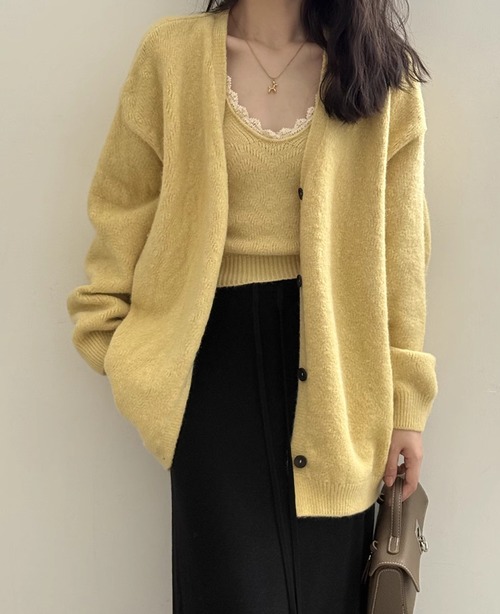 ▽Instagram「新作情報配信中」 フォローお願いいたします。 https://www.instagram.com/stir.clothes/ ▼カラー オフホワイト(画像2枚目) イエロー(画像3枚目) ライトブルー(画像4枚目) オレンジ(画像5枚目) クスミブルー(画像6枚目) ダークグレー(画像7枚目) オフホワイト(画像8枚目) ▼サイズ [ フリーサイズ ] カーディガン:着丈65cm バスト122cm 肩幅59cm 袖丈48cm 裾囲り106cm トップス:着丈47cm バスト56cm 裾囲り46cm ※1-3cm程度の誤差がある場合がございます。予めご了承ください。 ▼素材 アクリル、ナイロン、ポリエステル ▼シーズン 秋,冬 ▼同じカテゴリの商品はこちら https://www.stir.jp/categories/3047418 ▽お支払い方法 ・クレジットカード決済 ・キャリア決済 (docomo/au/Softbank/Y!mobile) ・後払い決済 (商品お届け後コンビニ払いなど) ▽注意点 ※こちらの商品は決済から10日-3週間前後でのお届けとなります。 ※配送日時指定等に関しては、ご指定できないことご了承くださいませ。 ※できる限り早くお届けできるように手配させて頂きます。 ※検品はしておりますが、もし届いた商品に不備がありましたら、誠実に対応させていただきます。 商品ID:ST019703