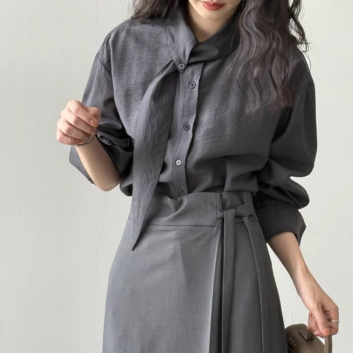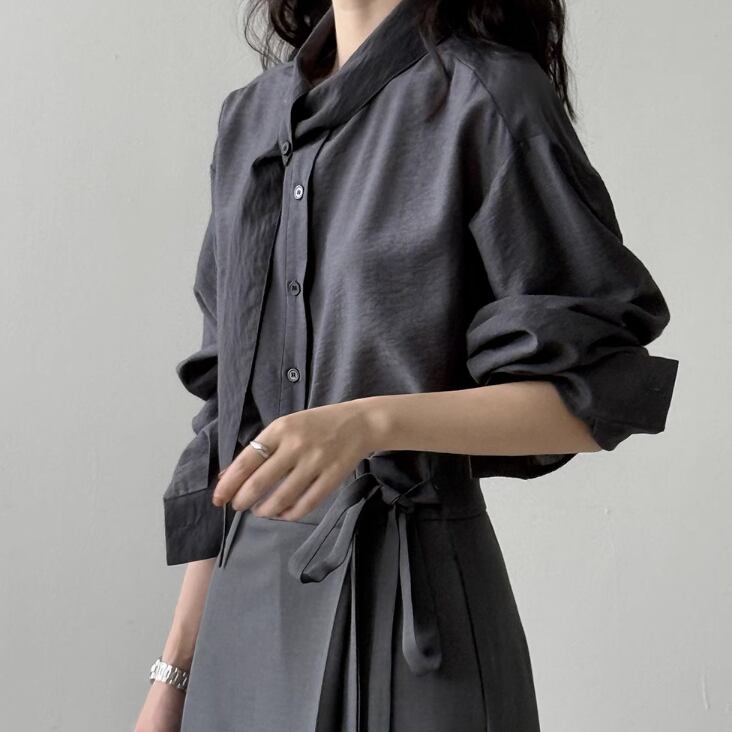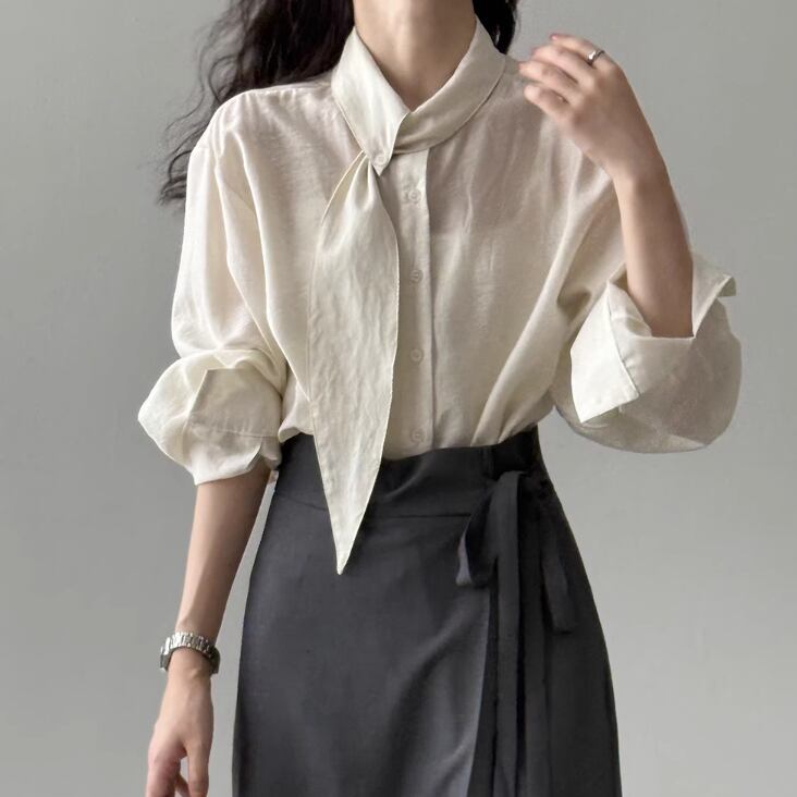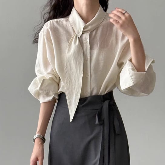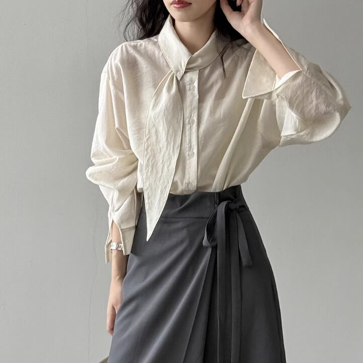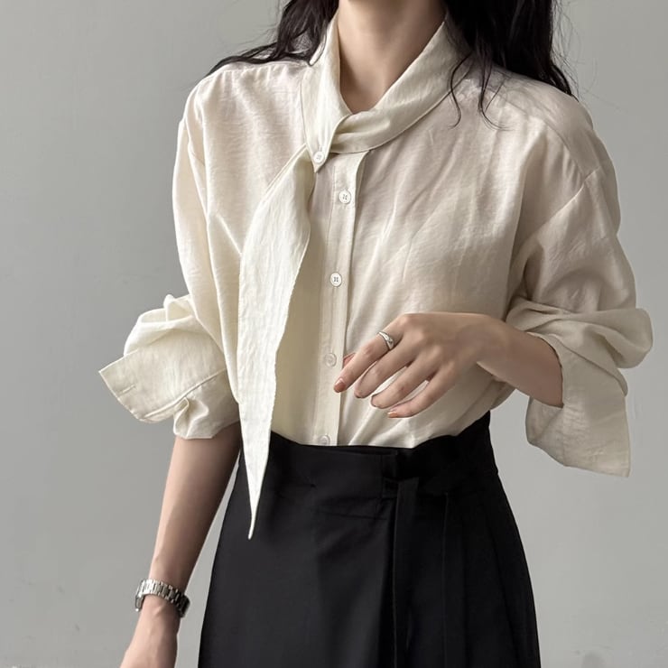 2色/ノーカラーバルーンスリーブブラウス ・17773
