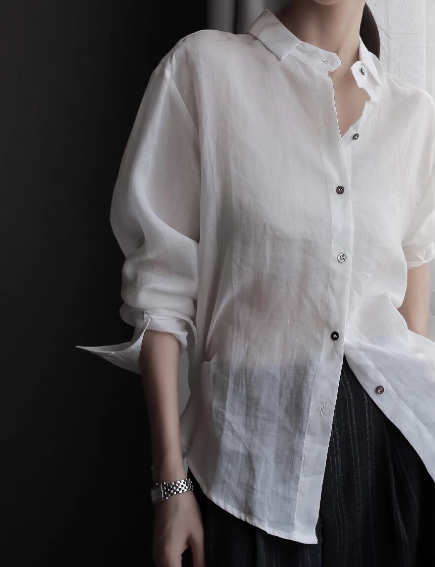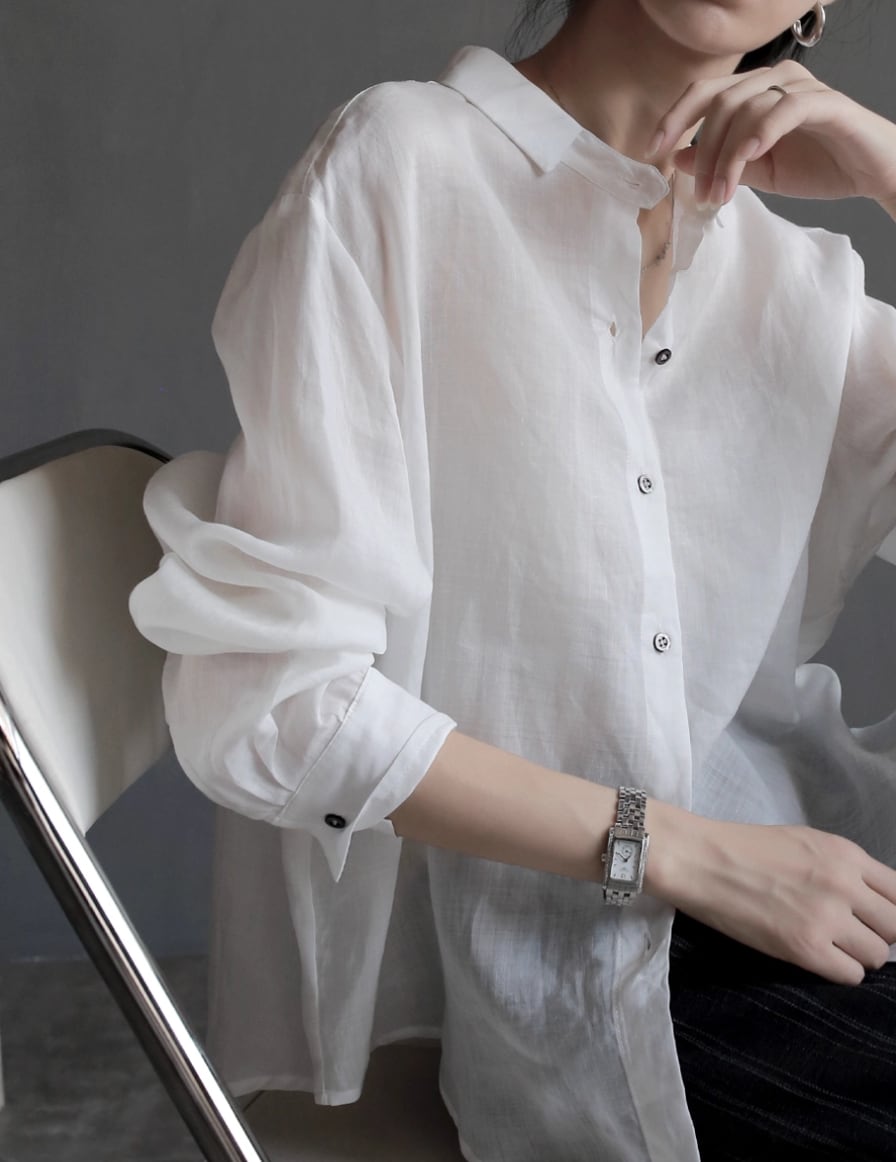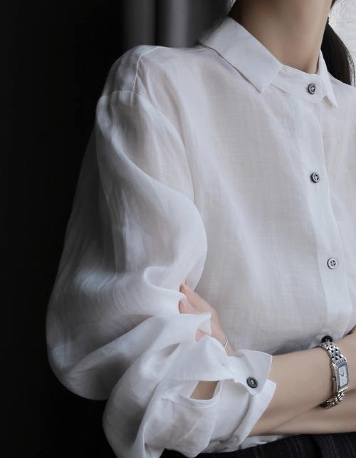 2色/ノーカラーバルーンスリーブブラウス ・17773