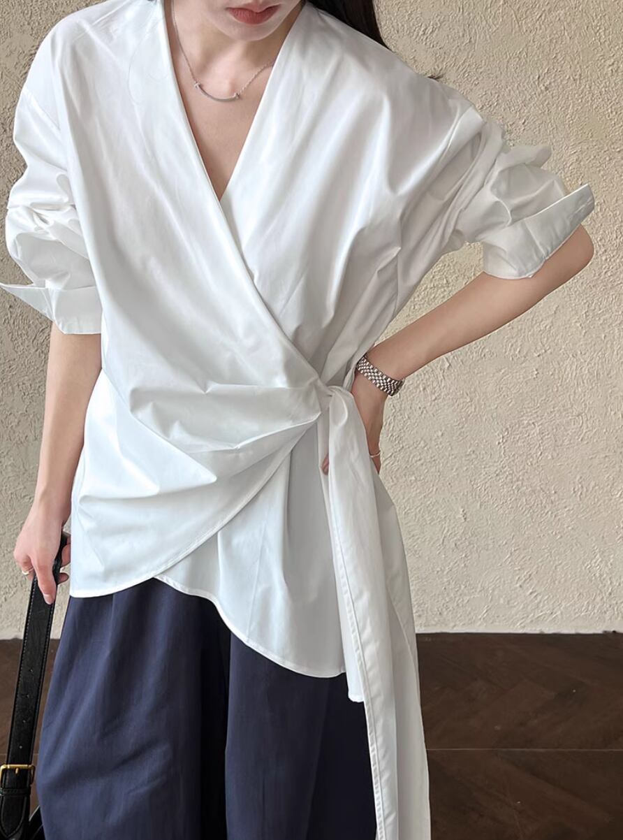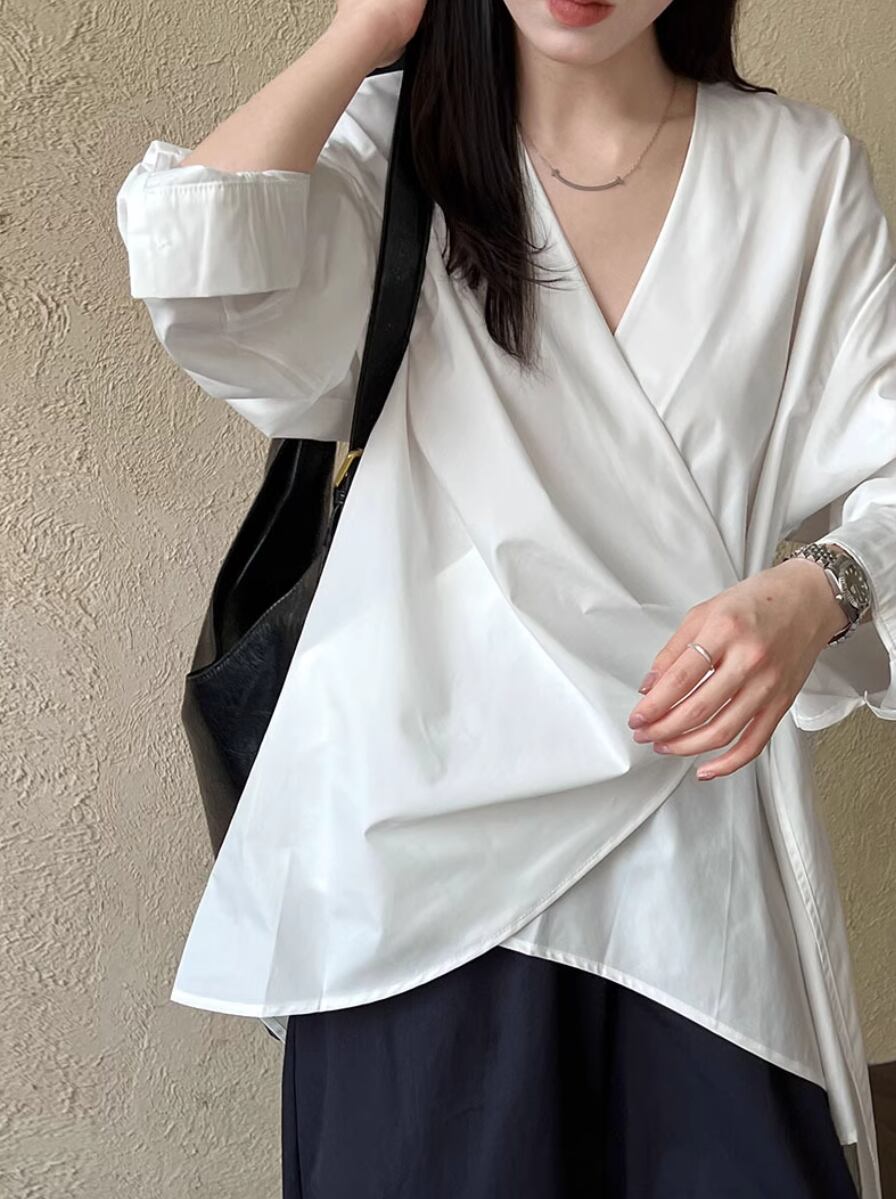 2色/ノーカラーバルーンスリーブブラウス ・17773