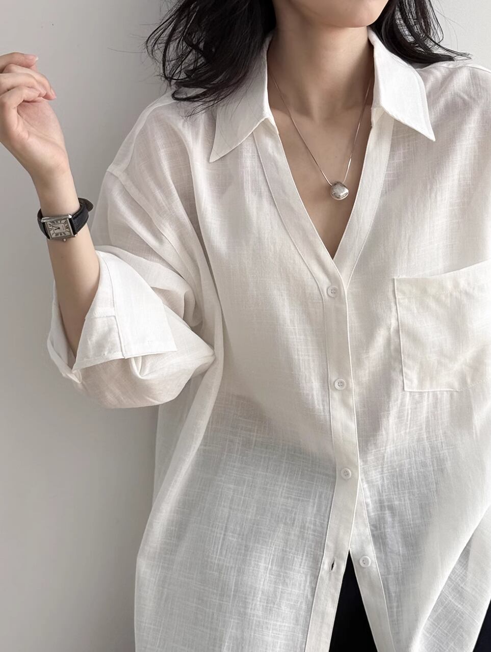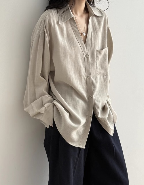 2色/ノーカラーバルーンスリーブブラウス ・17773