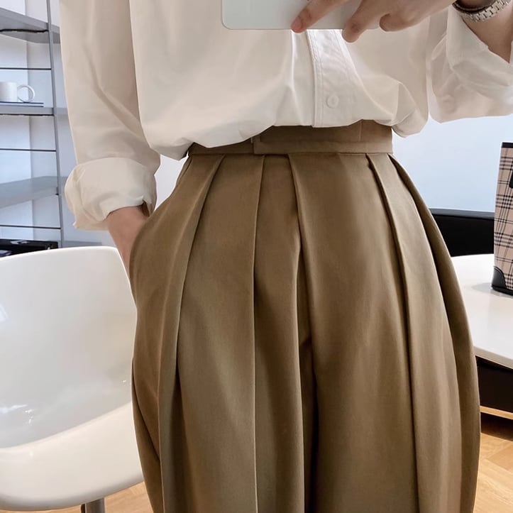 ボタンデザインワイドレッグパンツ ・20150