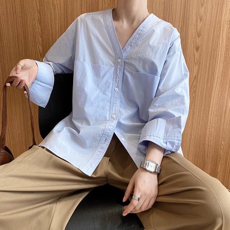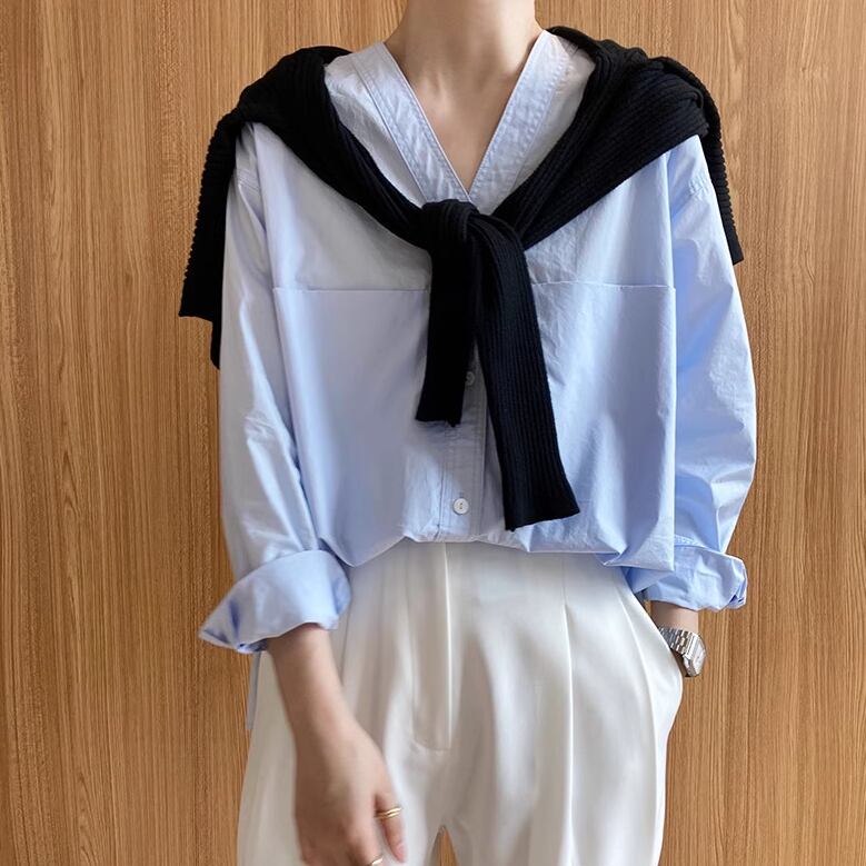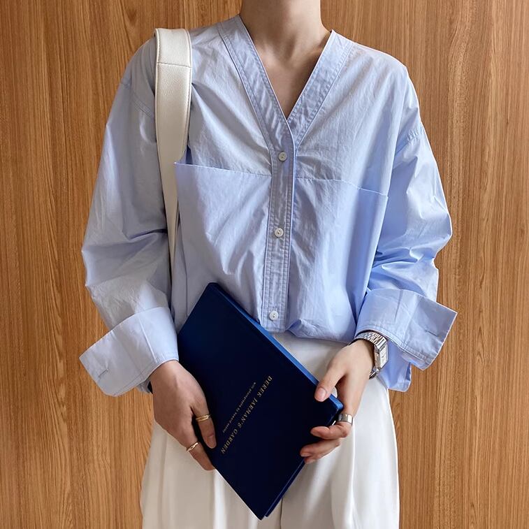 3色/Vネックテクスチャーブラウス ・14505