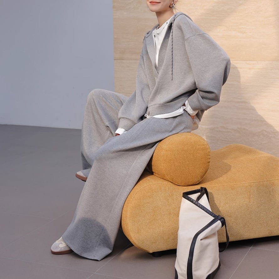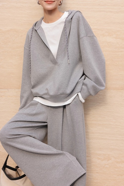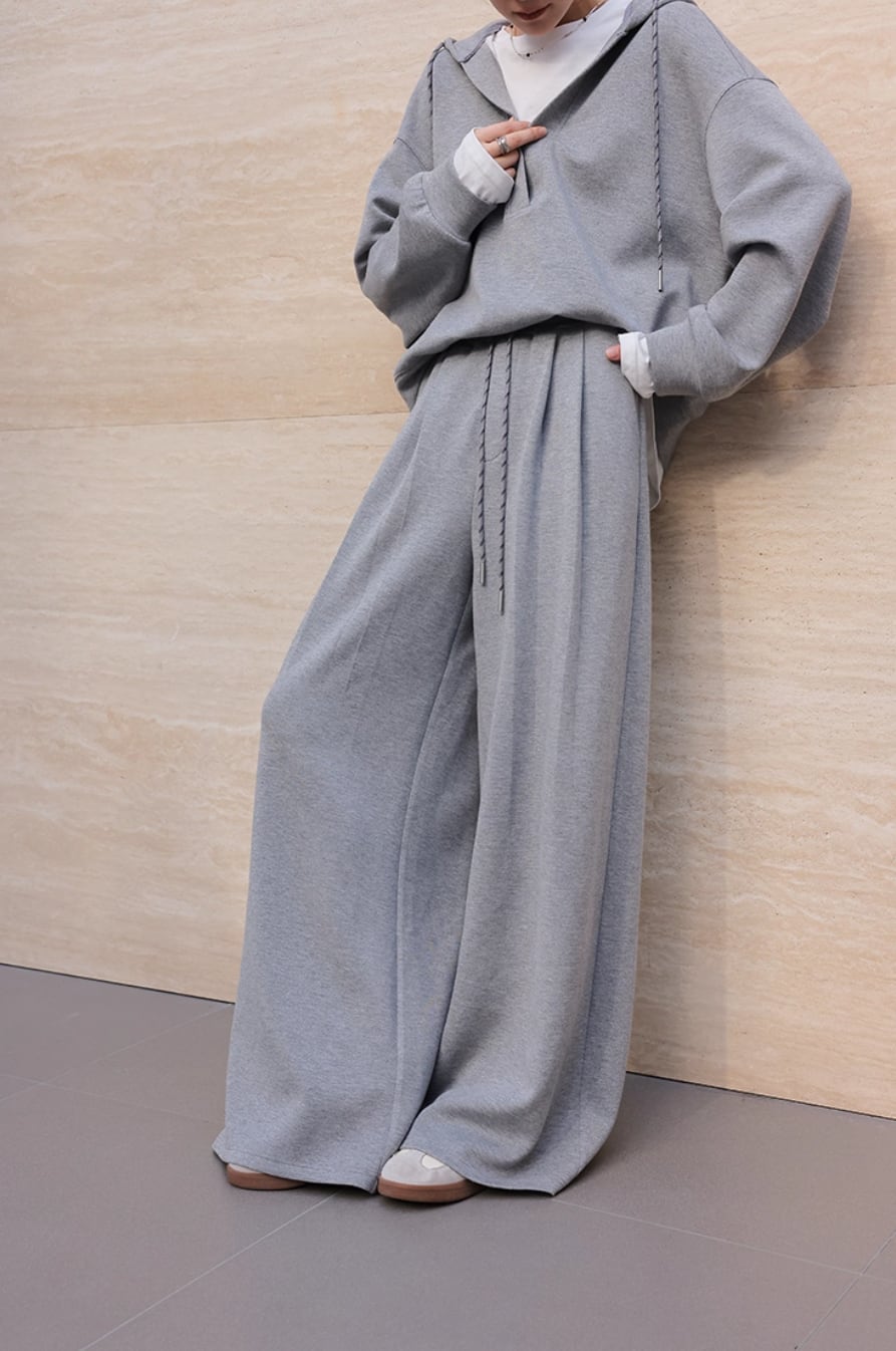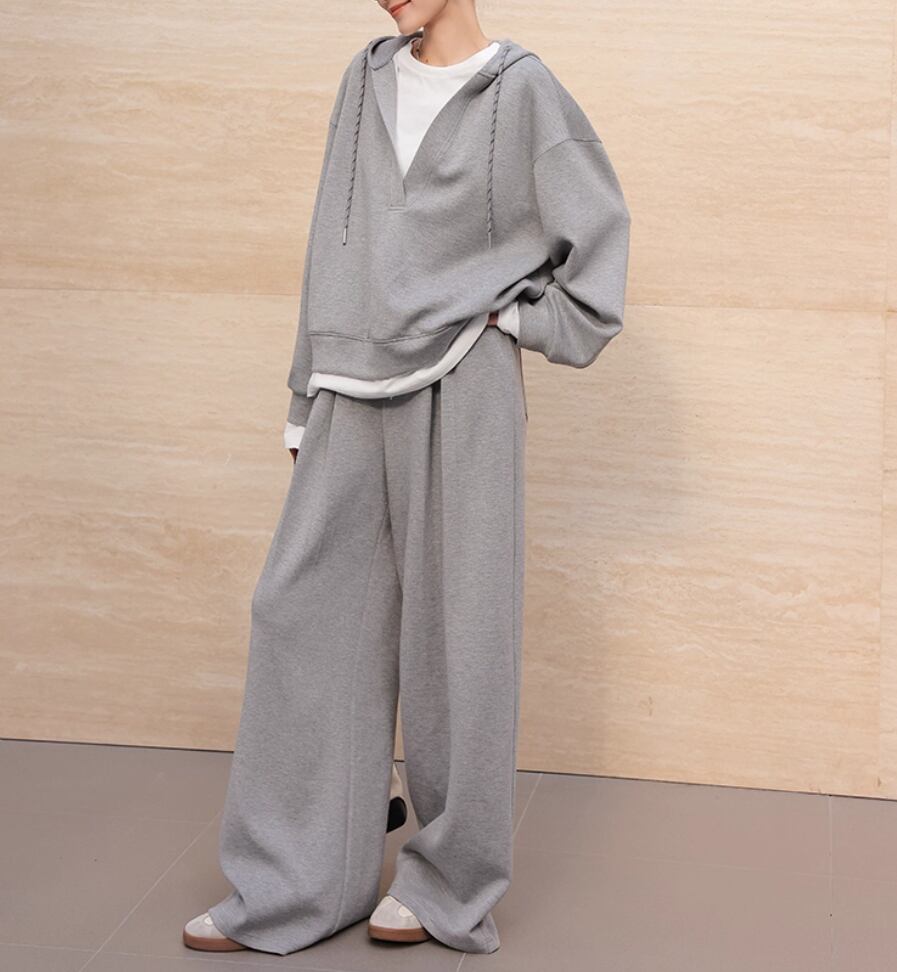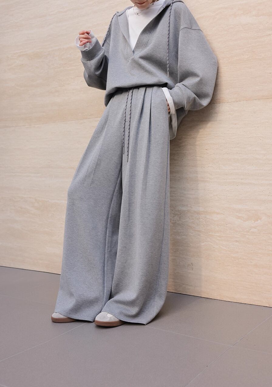 【2点セット】2色/ラウンドネックニットトップス+ワイドレッグパンツ ・20111