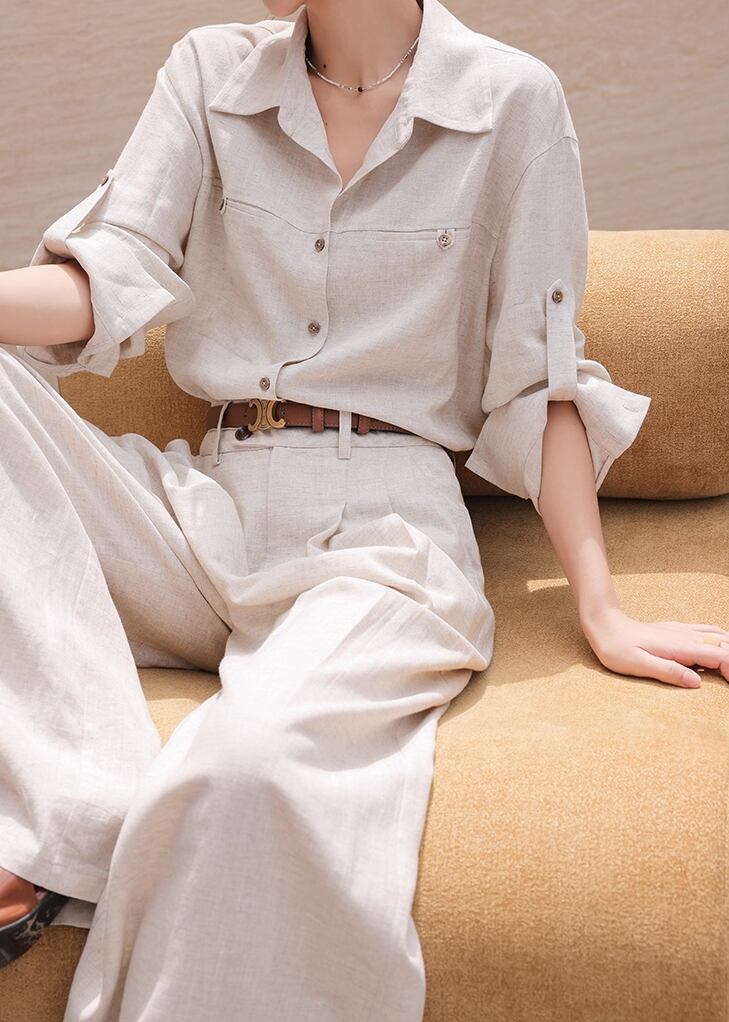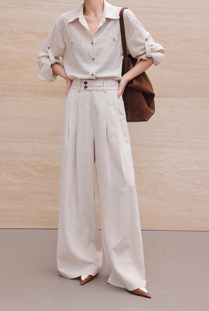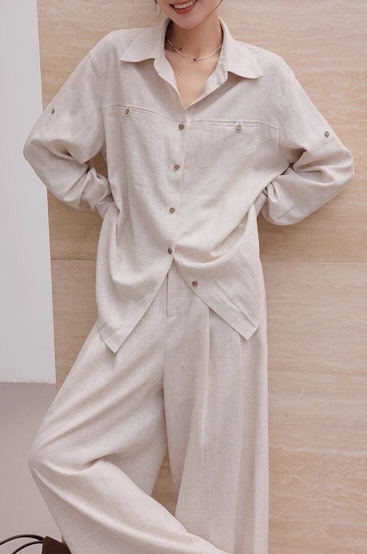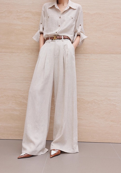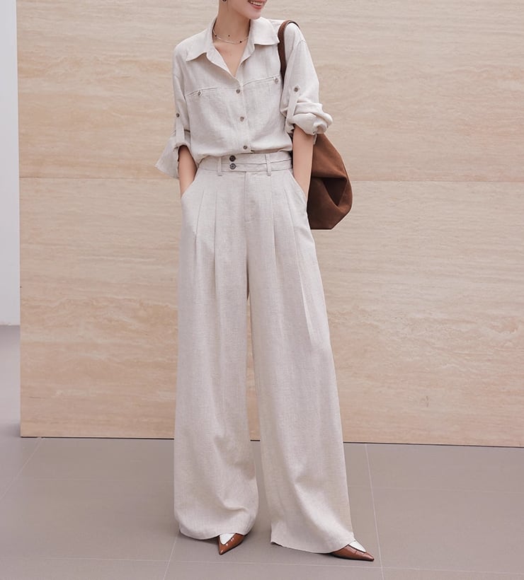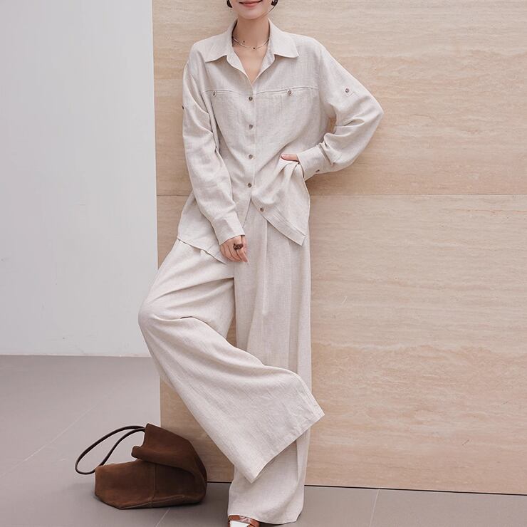 【2点セット】2色/ラウンドネックニットトップス+ワイドレッグパンツ ・20111