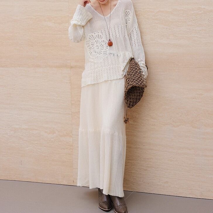 【2点セット】2色/ラウンドネックニットトップス+ワイドレッグパンツ ・20111
