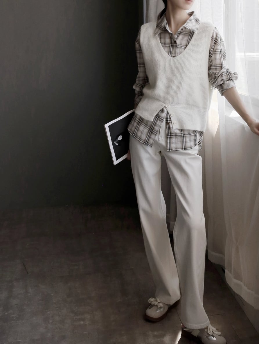 ボタンデザインワイドレッグデニムパンツ ・20967