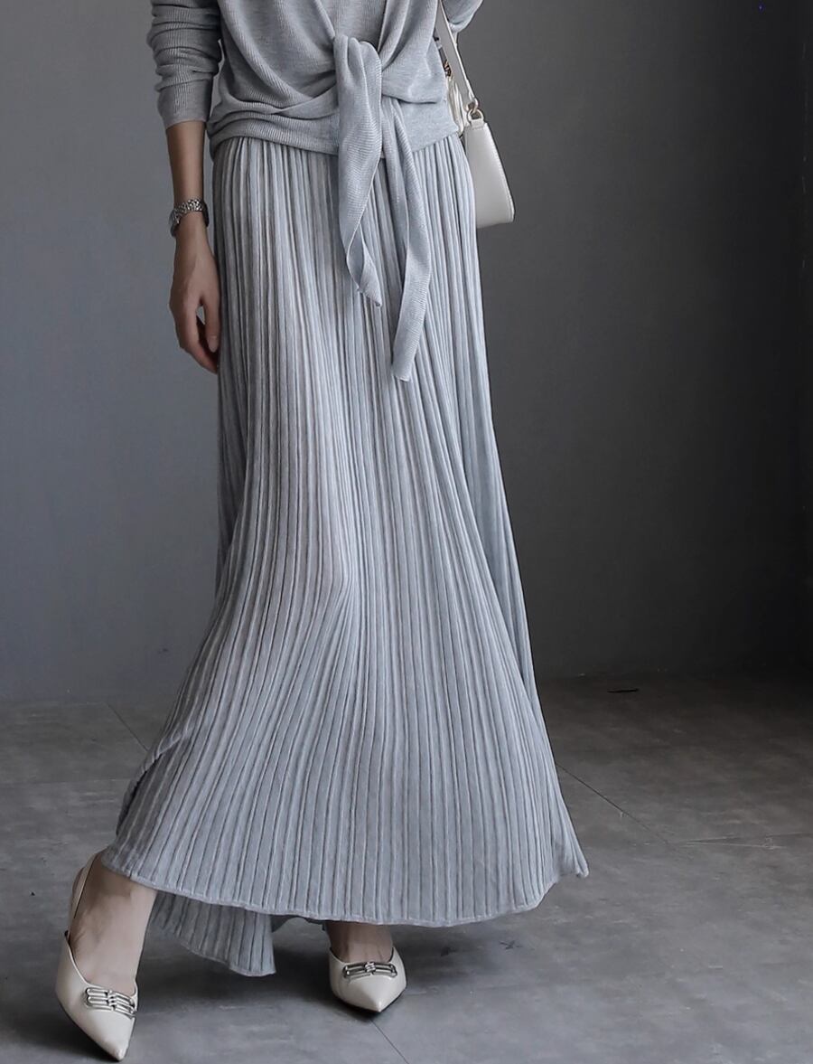 【2点セット】2色/バックボタンニットトップス+スカート ・19822