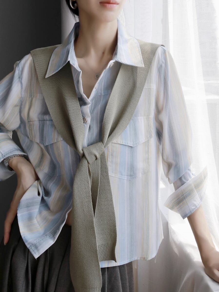 3色/Vネックテクスチャーブラウス ・14505